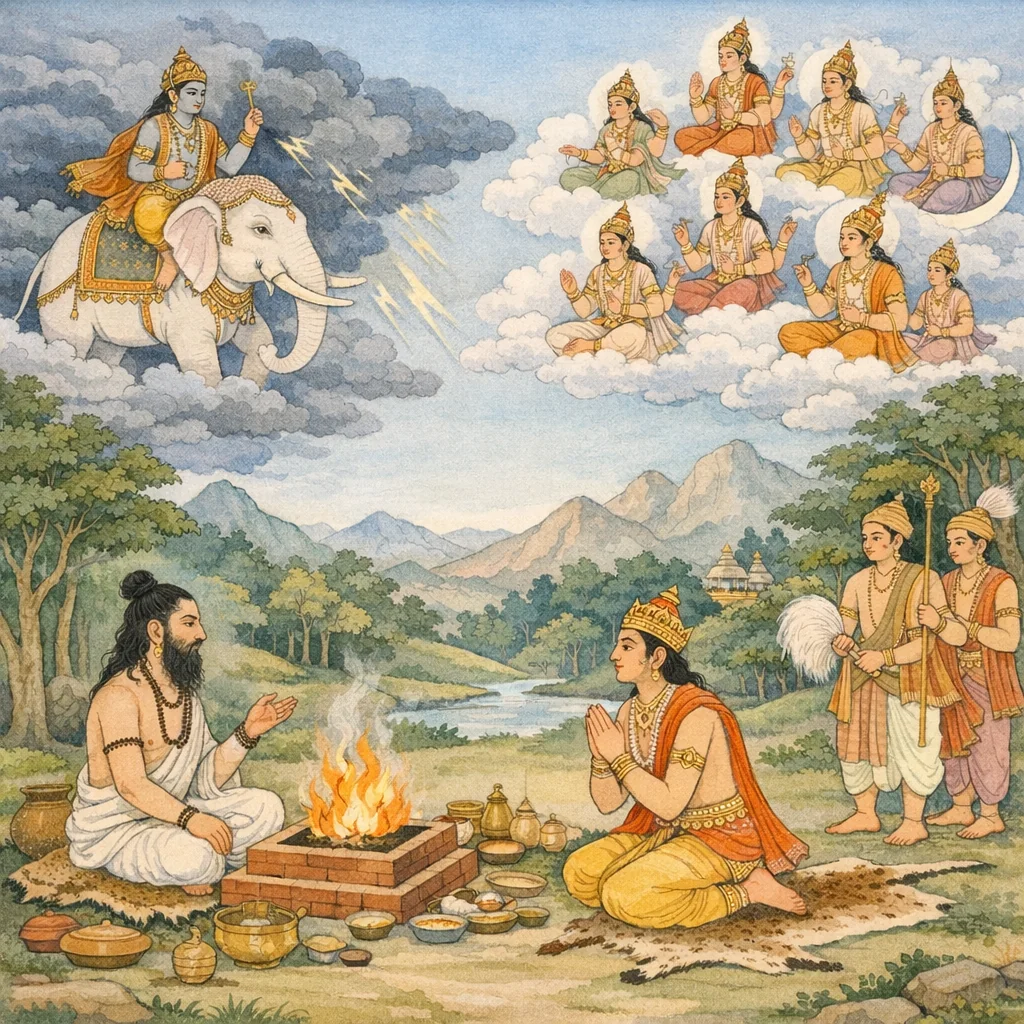 Marutta’s Sacrifice: Indra’s Threat, Saṃvarta’s Mantric Restraint, and Divine Reconciliation (अध्याय १०)