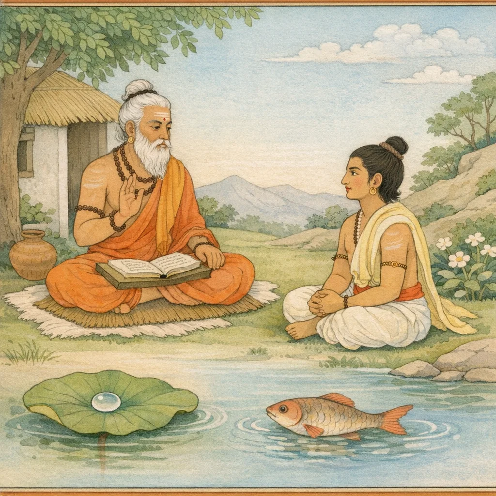 Chapter Arc: ब्रह्मोवाच—कुछ मुनि ब्रह्म को ‘वृक्ष’ कहते हैं, कुछ उसे ‘महावन’; उसी एक सत्य के अनेक रूपक सुनकर शिष्य-मन में जिज्ञासा जागती है कि आत्मा-परमात्मा का वास्तविक स्वरूप क्या है। → गुरु आत्म-संयम की सूक्ष्मतम कसौटी रखते हैं—अन्तकाल में श्वास-मात्र जितनी देर भी आत्म-ध्यान हो, या निमेष-भर मन आत्मा में टिके, तो अमृतत्व/अव्यय-प्राप्ति का द्वार खुलता है; पर साथ ही वे बताते हैं कि पुरुष का सत्त्व-आश्रय अनुमान-प्रमाण से जाना जाता है, प्रत्यक्ष से नहीं—यहीं शिष्य का संशय गहराता है। → सात्त्विक वृत्त का निर्णायक विधान—क्षमा, धृति, अहिंसा, समता, सत्य, आर्जव, ज्ञान, त्याग, संन्यास—इन गुणों को आत्म-ज्ञान की अनिवार्य भूमि बताकर गुरु ज्ञान को केवल वाणी नहीं, आचरण की अग्नि में तपाकर स्थापित करते हैं। → गुरु आत्मा और जगत के सम्बन्ध को रूपक से स्पष्ट करते हैं—जैसे मछली जल से भिन्न होते हुए भी जल में ही संयोग से रहती है, या कमल-पत्र पर जल-बिन्दु का सम्बन्ध; वैसे ही जीव देह-प्रकृति में रहते हुए भी उनसे असंग रह सकता है। अन्त में सत्त्व की सर्वोच्चता का प्रतिपादन—सत्त्व से परे यहाँ कोई श्रेष्ठ नहीं—और अन्तःकरण-शुद्धि से इच्छित फल की सिद्धि का संकेत। → मुनि-श्रेष्ठ ब्राह्मण पुनः संशय में पड़कर लोकपिता (ब्रह्मा) से प्रश्न करते हैं—अगले प्रसंग में वही संशय-भेदन आगे बढ़ता है।