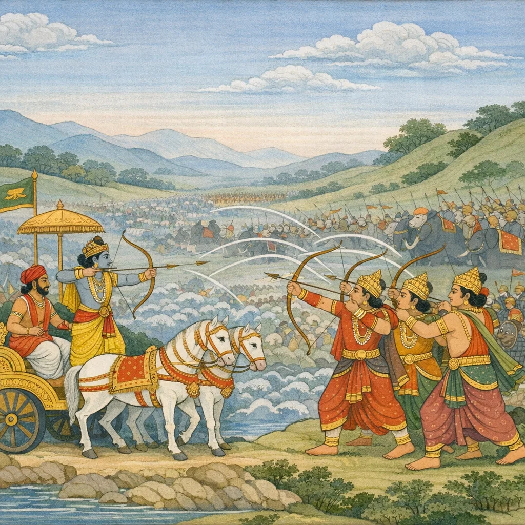 Arjuna confronts the conflict between battlefield necessity and the prohibition against harming one’s ācārya: he neutralizes Kṛpa under pressure, then interprets the act through the lens of guru-obligation and karmic consequence.