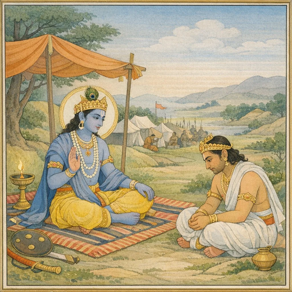 Sañjaya said: “O best of the Bharatas, such faint-hearted agitation is fit only for an ordinary, untrained man.” (In context, seeing Arjuna distressed, Śrī Kṛṣṇa urges him not to succumb to grief or weakness, for it is unbecoming of one who bears the responsibility of dharma in a righteous war.)