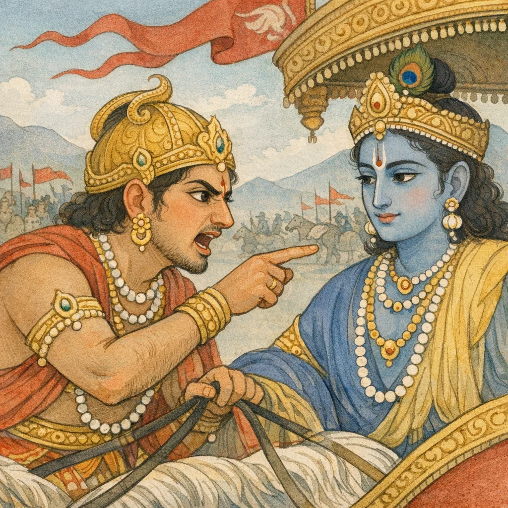 Kṛṣṇopadeśa and Duryodhana’s Challenge (Droṇa-parva, Adhyāya 77)