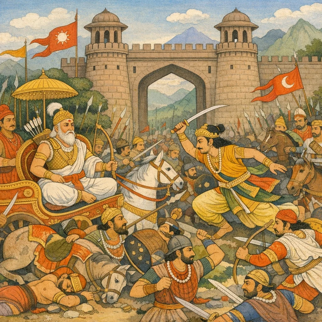 Sañjaya said: O King, never before have we seen—or even heard of—a battle like the one that took place when the sun stood at midday. O lord of the people, at the very height of the day a fierce, unprecedented conflict erupted, as though the world’s order itself were being tested by the fury of war.