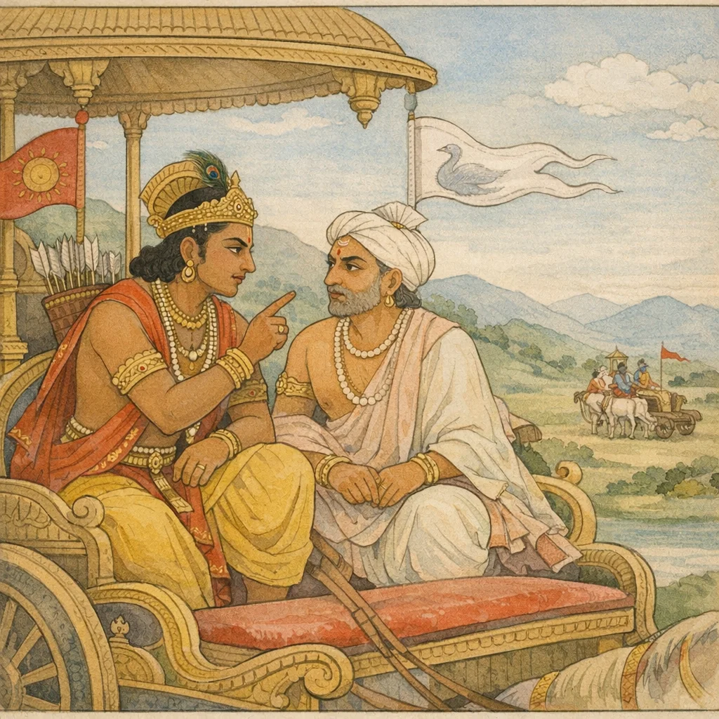 “O King of Madra, I know well at this moment the strength of Shauri (Krishna) who drives Arjuna’s chariot, and the great divine weapons of Arjuna, son of Pandu. But you, Shalya, are not truly acquainted with them.”