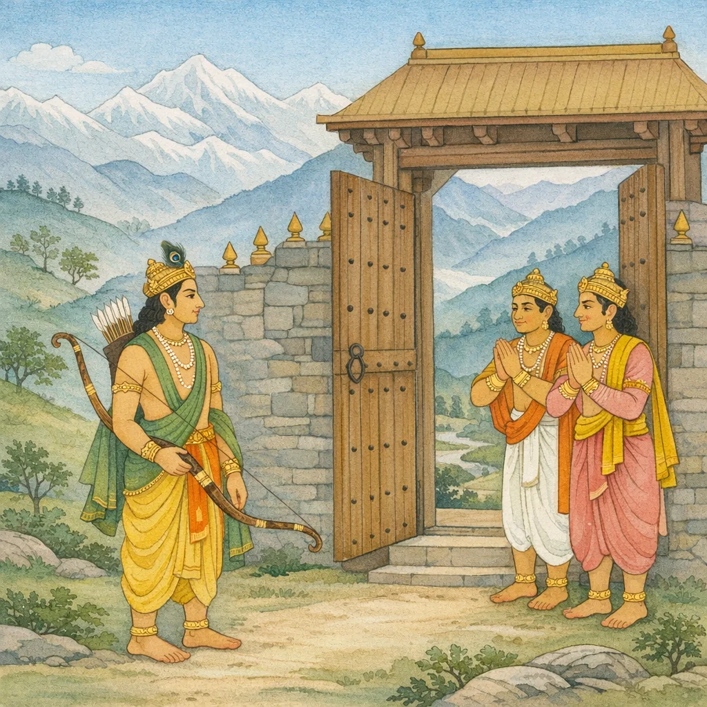Chapter Arc: वैशम्पायन जनमेजय को सुनाते हैं—उत्तर दिशा की ओर बढ़ा पाण्डवश्रेष्ठ अर्जुन श्वेतपर्वत-प्रदेश की ओर अग्रसर होता है, जहाँ दुर्गम भूगोल और अनजाने जनपद उसकी परीक्षा लेने को खड़े हैं। → अर्जुन क्षत्रिय-समूहों और दस्यु-समूहों के ‘महता संनिपात’ से टकराता है—ऐसा संग्राम जो ‘क्षत्रियान्तकरेण’ कहा गया है। विजय के बाद वह किम्पुरुष-देश, फिर गुह्यकों द्वारा रक्षित ‘हाटक’ नामक देश की ओर बढ़ता है; द्वारपालों का आगमन संकेत देता है कि आगे का मार्ग केवल शौर्य नहीं, मर्यादा और अनुमति भी माँगता है। → हाटक-देश के द्वारपाल महाबली होकर भी हर्ष से अर्जुन का स्वागत करते हैं और कहते हैं—‘यदि युद्ध के सिवा कुछ और करना चाहते हो, बताओ; हम तुम्हारे वचन से करेंगे।’ यह क्षण अर्जुन की कीर्ति का शिखर है: शत्रु-भूमि में भी उसकी प्रतिष्ठा ऐसी कि द्वारपाल स्वयं सेवा-भाव से प्रस्तुत हैं। → अर्जुन उत्तर दिशा में अनेक संग्राम कर विजयी होता है और विशाल चतुरंगिणी सेना सहित इन्द्रप्रस्थ (शक्रप्रस्थ) लौट आता है। वह समस्त धन-सम्पदा (सवाहन) धर्मराज युधिष्ठिर को समर्पित करता है और आज्ञा लेकर अपने गृह को जाता है—दिग्विजय का फल राजसूय-यज्ञ की तैयारी में जुड़ जाता है। → राजसूय के लिए संचित वैभव और बढ़ती प्रतिष्ठा आगे सभागृह-राजनीति, ईर्ष्या और आने वाले संकटों की भूमिका रचती है।