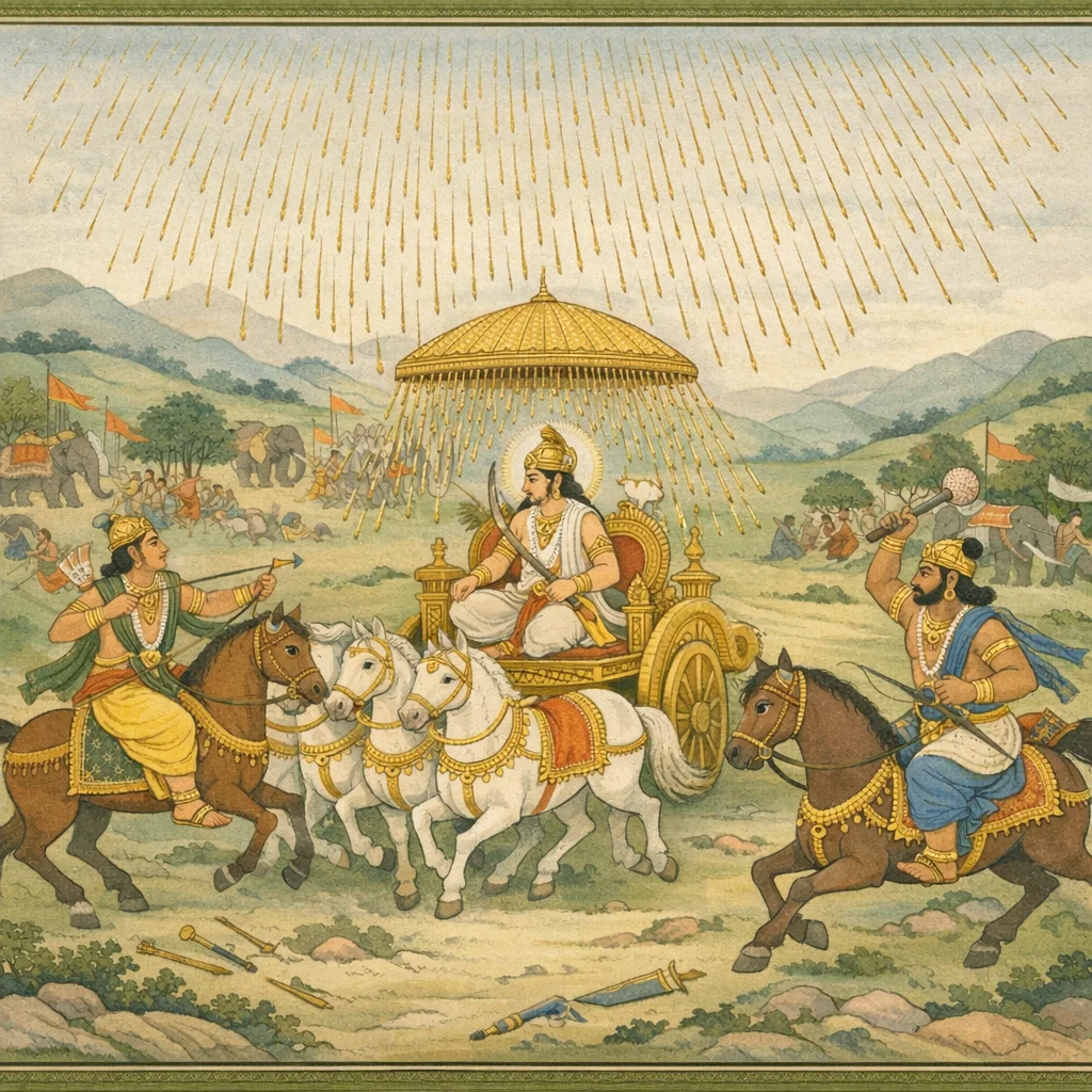 Upa-parva: Drauṇi–Arjuna Saṃśaptaka-vṛta Yuddha (Episode: Arrow-storm engagement and escalation)
