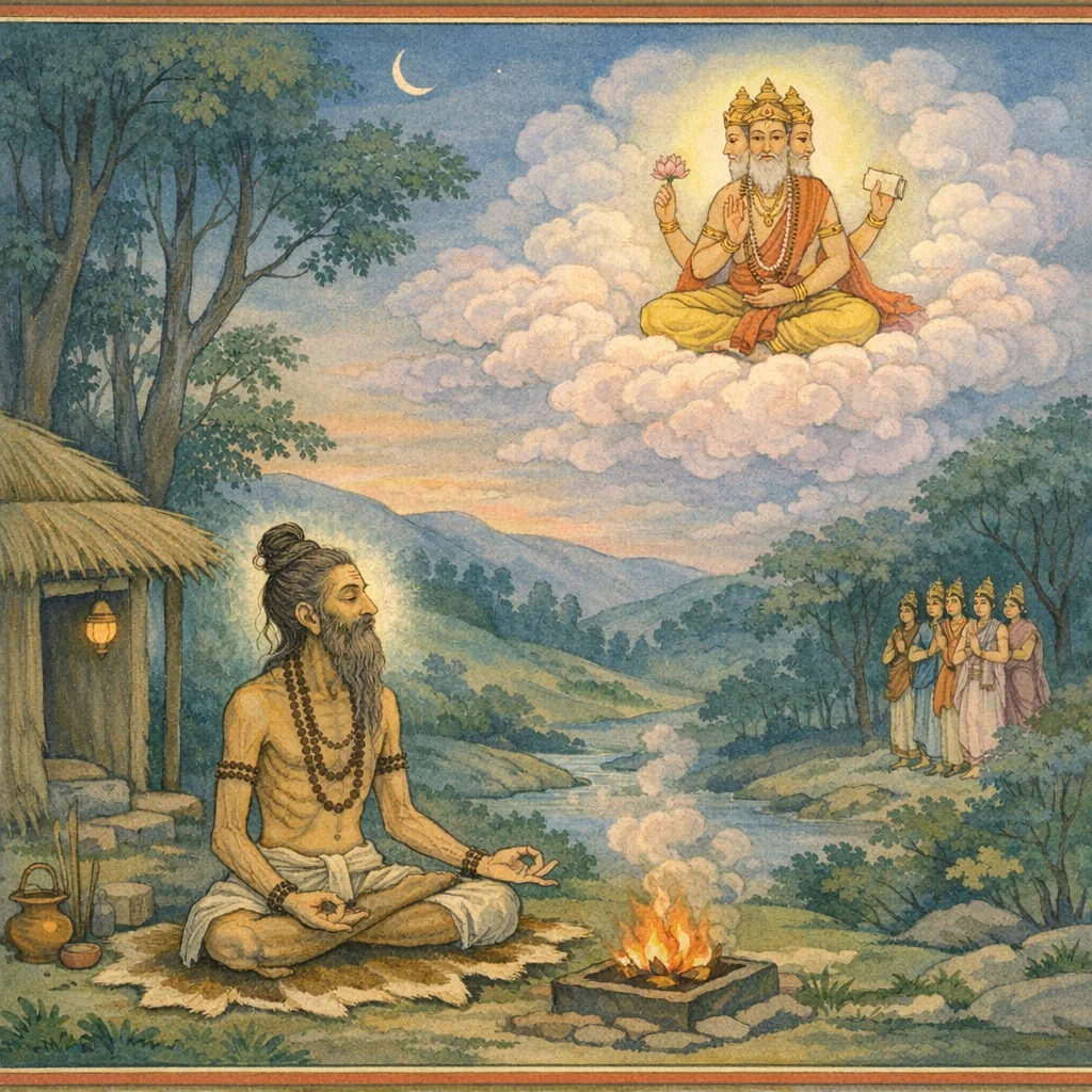 Chapter Arc: जनमेजय की जिज्ञासा उठती है—आर्तिषेण ने कैसा विपुल तप किया, और कुशिकवंशी विश्वामित्र ने किस प्रकार ब्राह्मणत्व प्राप्त किया? → वैशम्पायन सत्ययुग की कथा छेड़ते हैं: आर्तिषेण गुरुकुल में नित्य अध्ययनरत, और विश्वामित्र तपोनिष्ठ, जितेन्द्रिय। फिर राजकीय वैभव और आश्रम-धर्म का टकराव उभरता है—सेना सहित प्रस्थान, वसिष्ठाश्रम की ओर गमन, और देवताओं द्वारा व्रत-विघ्न रचने की चेष्टा। → विश्वामित्र की उग्र तपस्या से प्रसन्न होकर पितामह ब्रह्मा वर देने को उद्यत होते हैं; विश्वामित्र का निर्णायक वर-याचन—“मैं ब्राह्मण हो जाऊँ”—और ब्रह्मा का ‘तथास्तु’। → ब्राह्मणत्व प्राप्त कर विश्वामित्र कृतकाम होते हैं; देवतुल्य यश के साथ समस्त भूमण्डल में विचरण करते हैं—तप की सिद्धि और संकल्प की पूर्णता स्थापित होती है। → अब प्रश्न शेष रहता है—जिस ब्राह्मणत्व को तप से पाया, वह आचरण और लोक-स्वीकृति में कैसे प्रतिष्ठित हुआ, और वसिष्ठ-संबंधी संघर्ष का आगे क्या रूप बना?