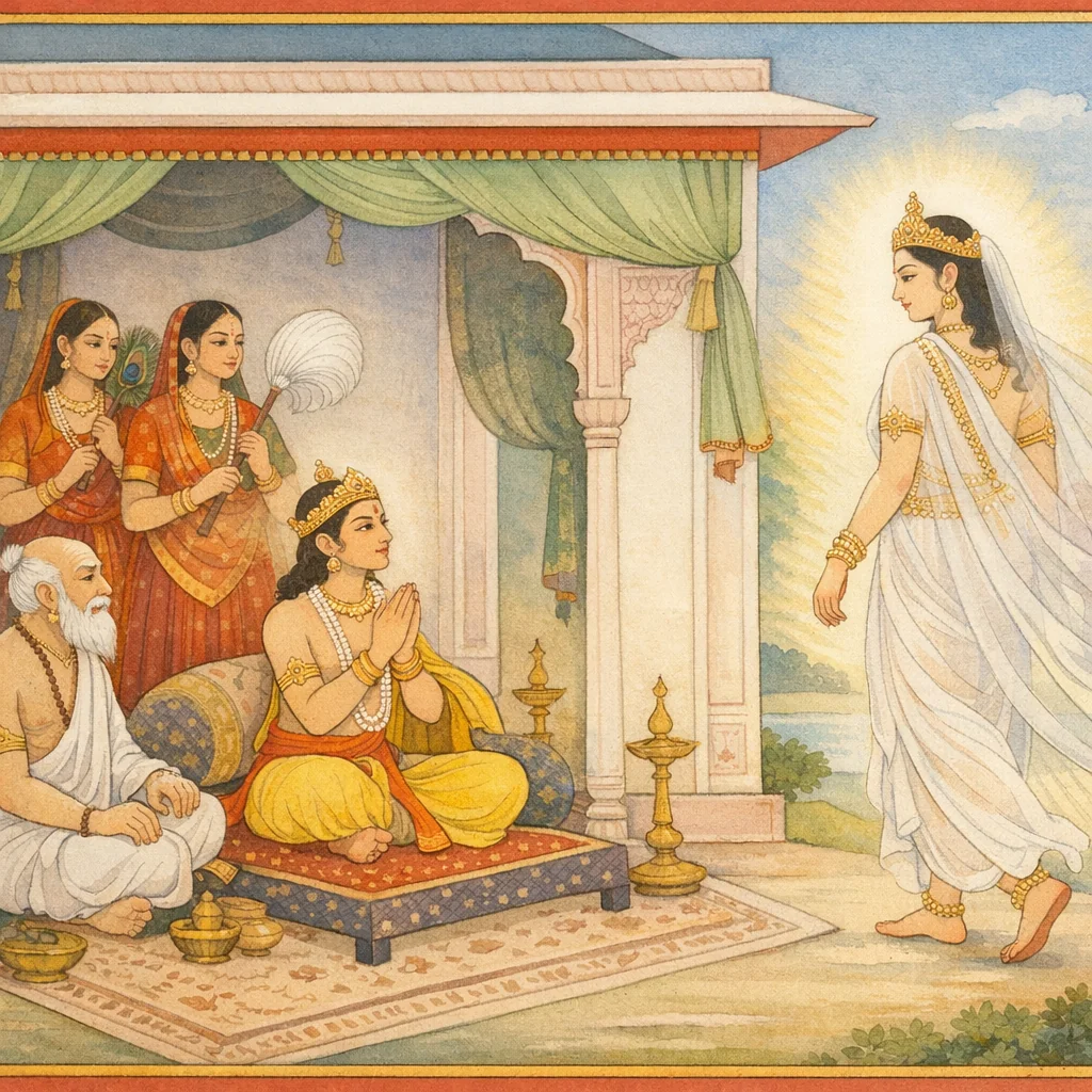 Then he questioned her again: “O Lotus-dwelling Lady, where are you going? You are the goddess devoted to truth, the supreme sovereign of the world. And who was that foremost of Brahmins? I wish to know the truth of it precisely.”