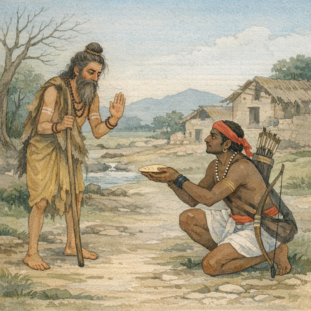 Hospitality and refuge-protection are portrayed as decisive tests of dharma: the ethical identity of a householder is measured by disciplined generosity and non-betrayal of refuge even when circumstances are adverse.