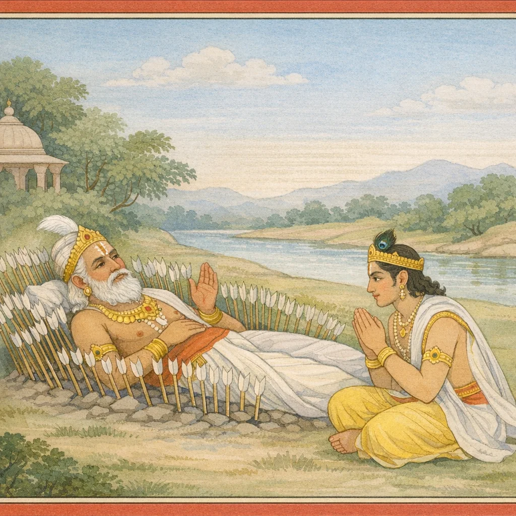 Bhishma said: “That supreme, ancestral abode—born of the Brahmic source—is ever concealed within the cave of the heart. It is reached only through dama: the disciplined restraint of the senses and the steady governance of the mind.”