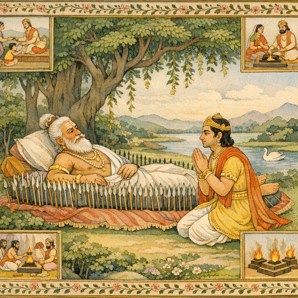 Upa-parva: Rājadharmānuśāsana (राजधर्मानुशासन) — Instruction on Kingship and Public Ethics
