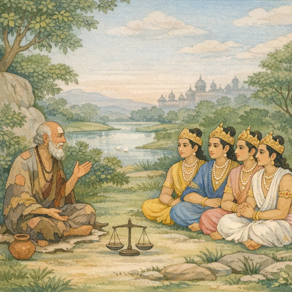 आकिंचन्यं च राज्यं च तुलया समतोलयम् | अत्यरिच्यत दारिद्रयं राज्यादपि गुणाधिकम्,“मैंने अकिंचनता तथा राज्यको बुद्धिकी तराजूपर रखकर तौला तो गुणोंमें अधिक होनेके कारण राज्यसे भी अकिंचनताका ही पलड़ा भारी निकला