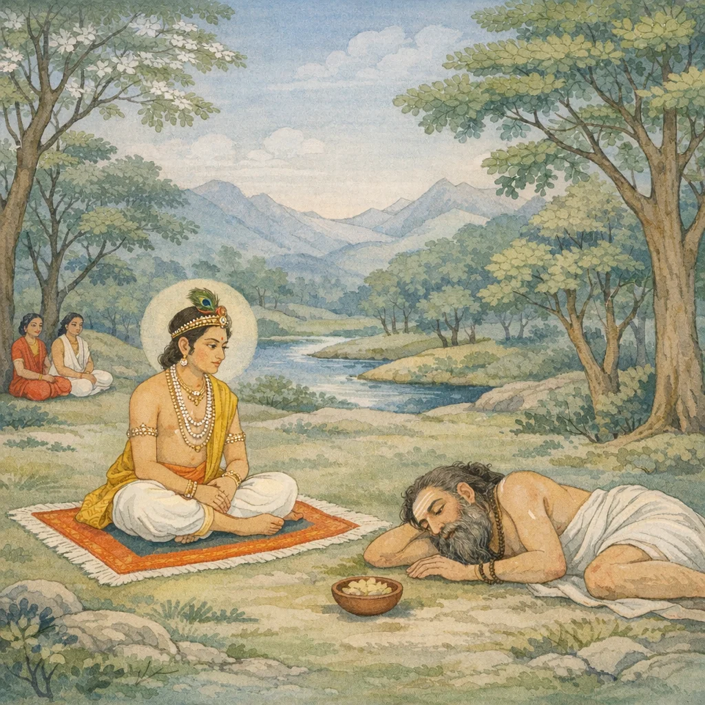 Bhishma said: “This ‘python-like’ way of life is steady and unshakable, free from decay, auspicious, sorrowless, pure, incomparable, and approved by the judgment of the wise. It is not liked and therefore not practiced by the deluded. Abiding always in purity of intent, I follow this ajagara-vṛtti—living without restless striving, content with what comes of itself.”