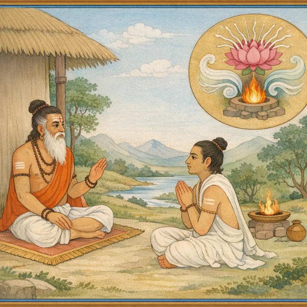 Bharadvāja said: The bodily fire that pervades all the constituents of the body is set in motion by the vital wind called Samāna. Remaining within the body, it regulates the bodily fluids, the tissues, and the humors (such as phlegm), sustaining their proper functioning. In this teaching, inner discipline is grounded in understanding the body’s ordered processes: balance and right regulation are presented as the basis for well-being and steadiness in dharma.