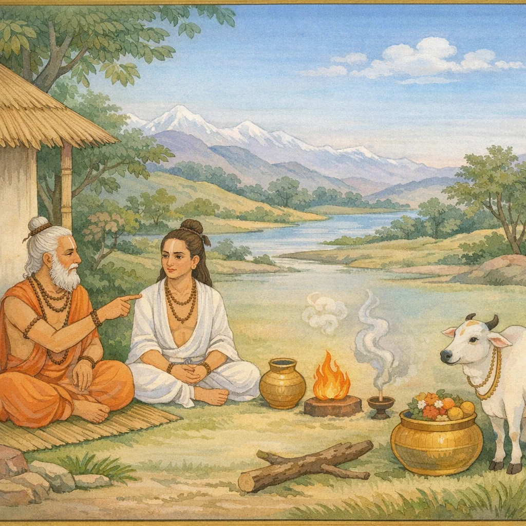 Chapter Arc: जीव के स्वरूप पर तीखा आक्षेप उठता है: प्राणवायु के दस भेद गिनाए जाते हैं और पूछा जाता है—यदि देह की उष्मा अग्नि का अंश है और गति वायु की, तो ‘जीव’ नाम की अलग सत्ता कहाँ है? → मृत्यु-क्षण का निरीक्षण सामने रखा जाता है—प्राणी के मरते ही वायु देह छोड़ती है, उष्मा नष्ट होती है; तब न कोई ‘जीव’ प्रत्यक्ष मिलता है, न उसकी कोई गमन-रेखा। पंचभूतों के क्षय (रोग, घाव, क्लेश) से देह के तत्त्व बिखरते हैं और प्रश्न और कठोर होता जाता है: यदि जीव है तो वह किसके पीछे दौड़ता है, क्या सुनता-बोलता-जानता है? → लोक-आस्था पर सीधा प्रहार होता है—मृत्यु के समय गोदान इस आशा से किया जाता है कि ‘यह गौ परलोक में तार देगी’; पर यदि जीव का स्वतंत्र अस्तित्व ही सिद्ध नहीं, तो किसे तारेगी? इसी के साथ उपमा आती है: कटे वृक्ष की जड़ नहीं उगती—तो मरा हुआ फिर कैसे लौटेगा? → वक्ता कारण-कार्य की एक वैकल्पिक व्याख्या रखता है: जगत ‘बीज’ की परंपरा से चलता है—बीज से बीज प्रवर्तित होता है; व्यक्त देह नष्ट होती है, पर क्रम/परिवर्तन चलता रहता है। इस प्रकार ‘व्यक्तिगत जीव’ की धारणा को चुनौती देकर प्रकृति-तत्त्वों और कारण-श्रृंखला की ओर निष्कर्ष मोड़ा जाता है। → यदि जीव पंचभूत-वायु-उष्मा से परे नहीं, तो कर्म, परलोक और मोक्ष की भाषा किस आधार पर टिकेगी—अगला संवाद इसी गाँठ को खोलने की माँग करता है।