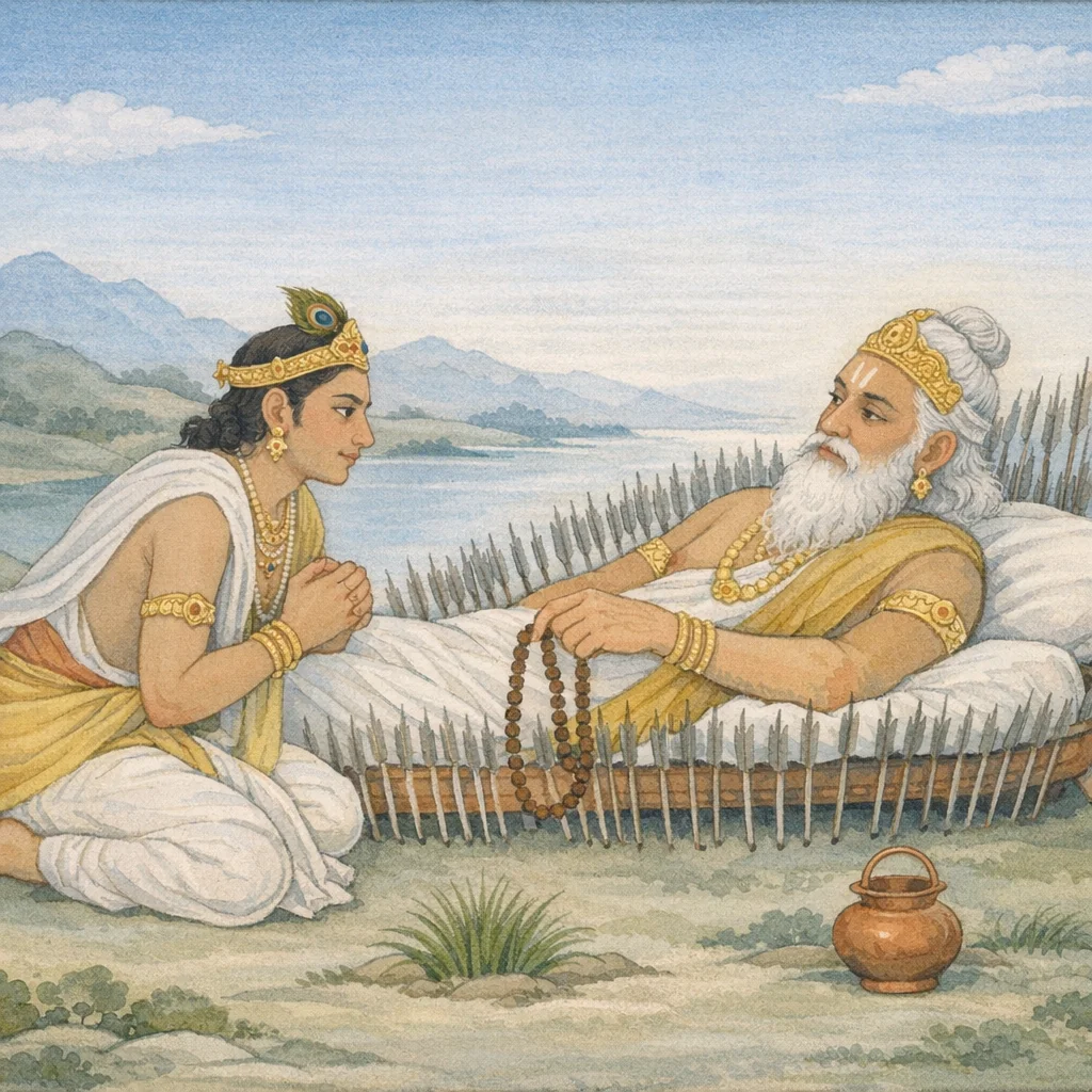 Chapter Arc: युधिष्ठिर, अब तक सुनी हुई धर्मकथाओं से तृप्त होते हुए भी, एक सूक्ष्म संशय लेकर भीष्म से पूछते हैं—जप करने वालों को कौन-सा फल मिलता है और वे किस लोक/अवस्था को प्राप्त होते हैं। → भीष्म उत्तर को केवल ‘फल’ की सूची तक सीमित नहीं रखते; वे चेतावनी देते हैं कि कामादि विकारों से दूषित बुद्धि मन को चंचल बनाती है, और वही चंचलता साधक को अधोगति—नरक या नाना योनियों—की ओर ढकेल सकती है। जप-मार्ग का मूल्यांकन अब नैतिक-मानसिक शुद्धि की कसौटी पर आ टिकता है। → मुख्य बिंदु यह उभरता है कि जप का फल यांत्रिक उच्चारण से नहीं, बल्कि मन-समाधि और इन्द्रिय-जय से सुनिश्चित होता है; दूषित बुद्धि के कारण ‘बहुत-से नरकों की प्राप्ति’ का कथन इसी हेतु है—जप भी तब तक फलदायी नहीं जब तक काम-क्रोध आदि से बुद्धि मुक्त न हो। → अध्याय जप को ध्यान-योग की देहलीज़ के रूप में प्रतिष्ठित करता है—जप से बल/संस्कार-संचय, उससे ध्यान की सिद्धि, और अंततः मन-इन्द्रियों पर विजय की दिशा। साथ ही यह स्पष्ट करता है कि पतन का कारण बाह्य कर्म नहीं, भीतर की आसक्ति और अविवेक है। → भीष्म की बात आगे के लिए द्वार खोलती है—यदि बुद्धि कामादि से दूषित हो तो पतन निश्चित है; तो शुद्धि की ठोस प्रक्रिया, विवेक-स्थापन और मनोनिग्रह की क्रमिक साधना आगे कैसे विस्तार पाएगी?