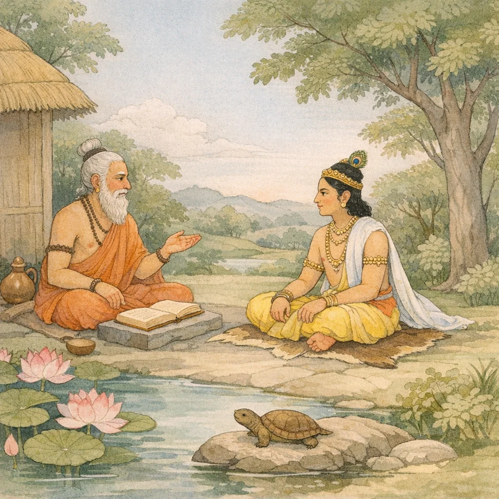 “Having established the people upon the path of dharma, let them live in accordance with righteousness. Even if one’s prosperity has passed on to one’s son, one should continue to live in the forest, sustaining oneself on what is wild—maintaining a life shaped by discipline and duty rather than by possession.”