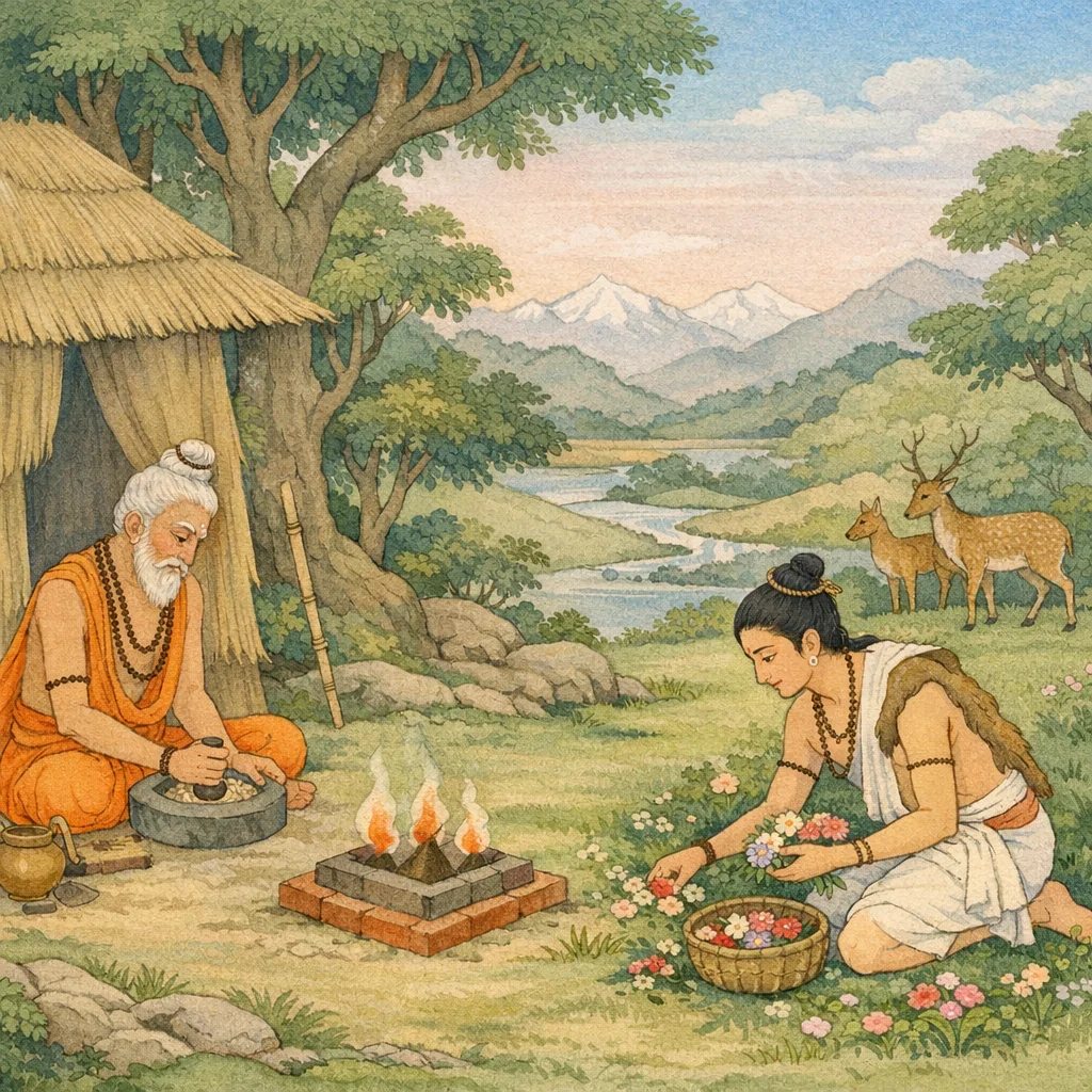 Vyāsa said: “When a householder sees in himself the signs of age—wrinkles and grey hair—and when his child has in turn obtained a child, then he should take refuge in the forest and enter the life of a forest-dweller (vānaprastha). This teaching frames renunciation not as abandonment of dharma, but as a timely transition: once family continuity is secured, one turns toward austerity, worship, and inner steadiness.”