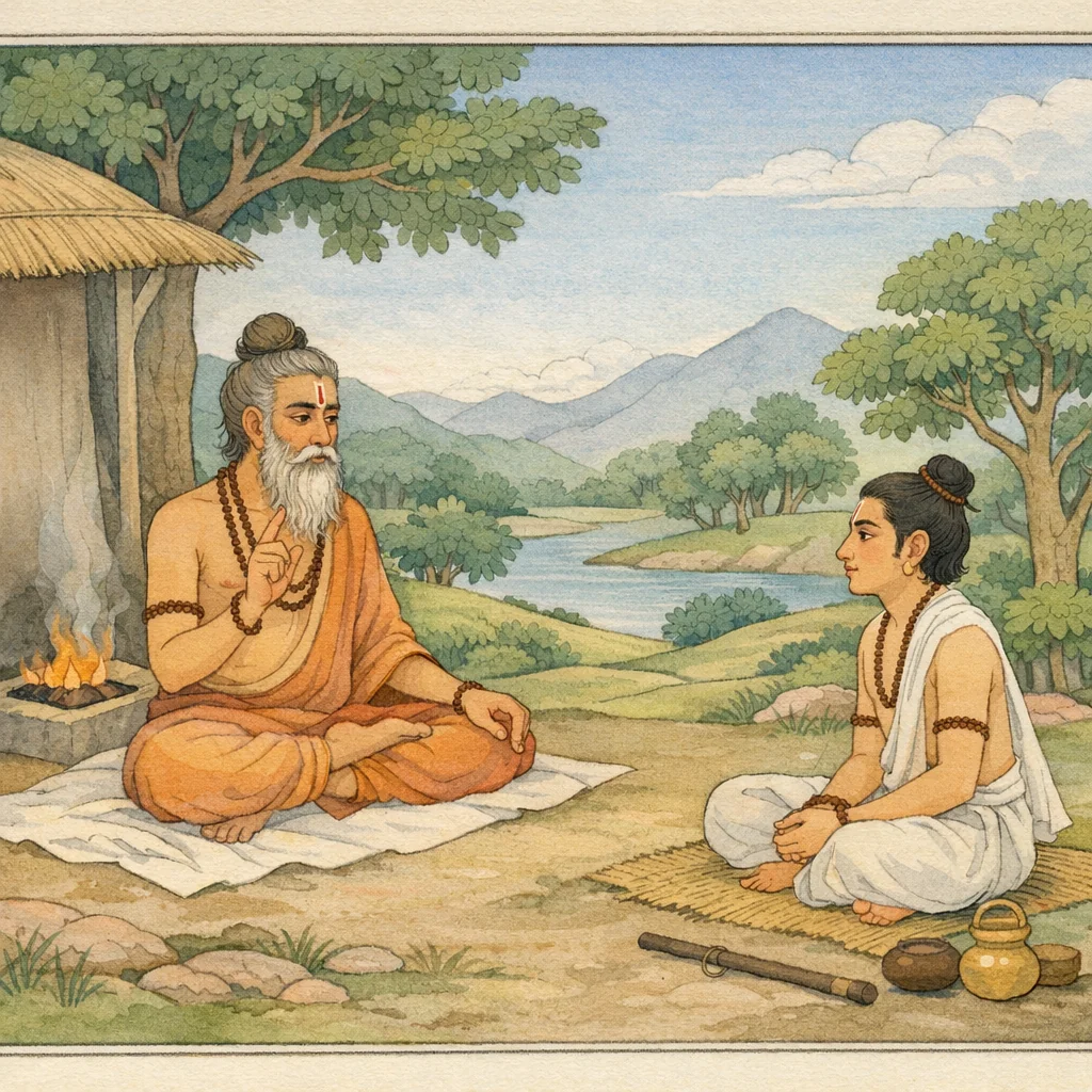 A boat, if it is tied to another boat that is itself being carried off by the current, cannot take anyone to the intended shore. In the same way, our “boat” of action—bound by the latent impressions (vāsanā) of deeds from former births and swept along by the stream—how can it ferry us, men of misguided understanding, across the ocean of becoming (bhava-sāgara)? O Blessed One, tell me this: I have come to you for refuge; instruct me.