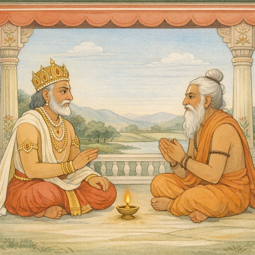 Janaka said: “O blameless one, even the reasoning you have given about the imperishable and the perishable seems to have slipped away from me, as though lost, because my understanding is unsteady. Though you have explained the perishable and the imperishable through many lines of argument, my wavering mind makes me feel as if I have forgotten them all.”