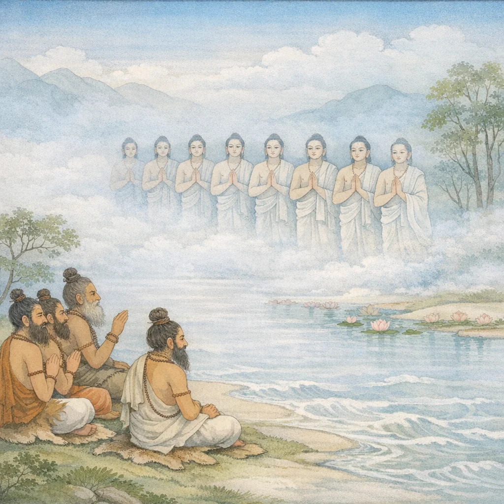 The Deity said: “You have beheld the white-hued persons, bereft of all sense-faculties.” In this passage, a bodiless, serene being addresses the ascetics, interpreting their vision as a sign of extreme austerity and warning that such experiences point toward a state beyond ordinary embodied perception, where sensory life is withdrawn and the seeker must discern the ethical and spiritual meaning rather than cling to marvels.