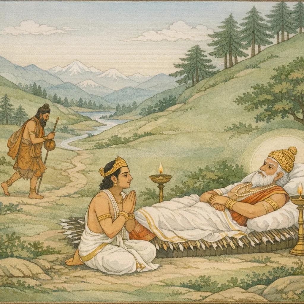 Chapter Arc: युद्ध की धूल बैठ चुकी है, पर मनुष्य के भीतर का कलुष नहीं—भीष्म युधिष्ठिर को स्मृति-वचनों के सहारे बतलाते हैं कि पाप का रूप अनेक है और उसका प्रायश्चित्त भी उतना ही कठोर। → सूची खुलती जाती है: सुवर्ण-चोरी, सुरापान, ब्रह्महत्या, गुरु-पत्नीगमन—हर अपराध के साथ तप, भिक्षा, व्रत, दान, जप, तीर्थ-यात्रा और देह-शोषण के विधान सामने आते हैं; प्रश्न उठता है—क्या शुद्धि कर्म से है, या अंतःकरण के परिवर्तन से? → अत्यंत तीव्र प्रायश्चित्तों का विधान चरम पर पहुँचता है—ब्रह्महत्या के लिए दीर्घकालीन भिक्षाचर्या, वेद-जप सहित दूरगमन, सर्वस्व-दान; सुरापान के लिए अग्निवर्ण तप्त मदिरा; गुरु-पत्नीगमन के लिए तप्त लोहे पर शयन या देह-छेदन जैसे कठोर उपाय—यहाँ धर्म ‘दंड’ नहीं, ‘आत्म-परिवर्तन’ की अग्नि बनकर प्रकट होता है। → भीष्म निष्कर्ष देते हैं कि विधि का सार श्रद्धा, अनसूया, सत्य-प्रकाशन और संयम में है; महायज्ञ (अश्वमेध आदि) भी पाप-क्षालन का साधन कहे गए हैं, पर नास्तिक, अश्रद्दधान, दम्भ-द्वेषप्रधान के लिए यह विधि फलित नहीं होती—क्योंकि पात्रता ही शुद्धि का द्वार है। → युधिष्ठिर के सामने अगला प्रश्न उभरता है—यदि विधि श्रद्धाहीन पर लागू नहीं, तो राज्य-धर्म में ऐसे जनों का शोधन/दंड/संस्कार कैसे किया जाए?