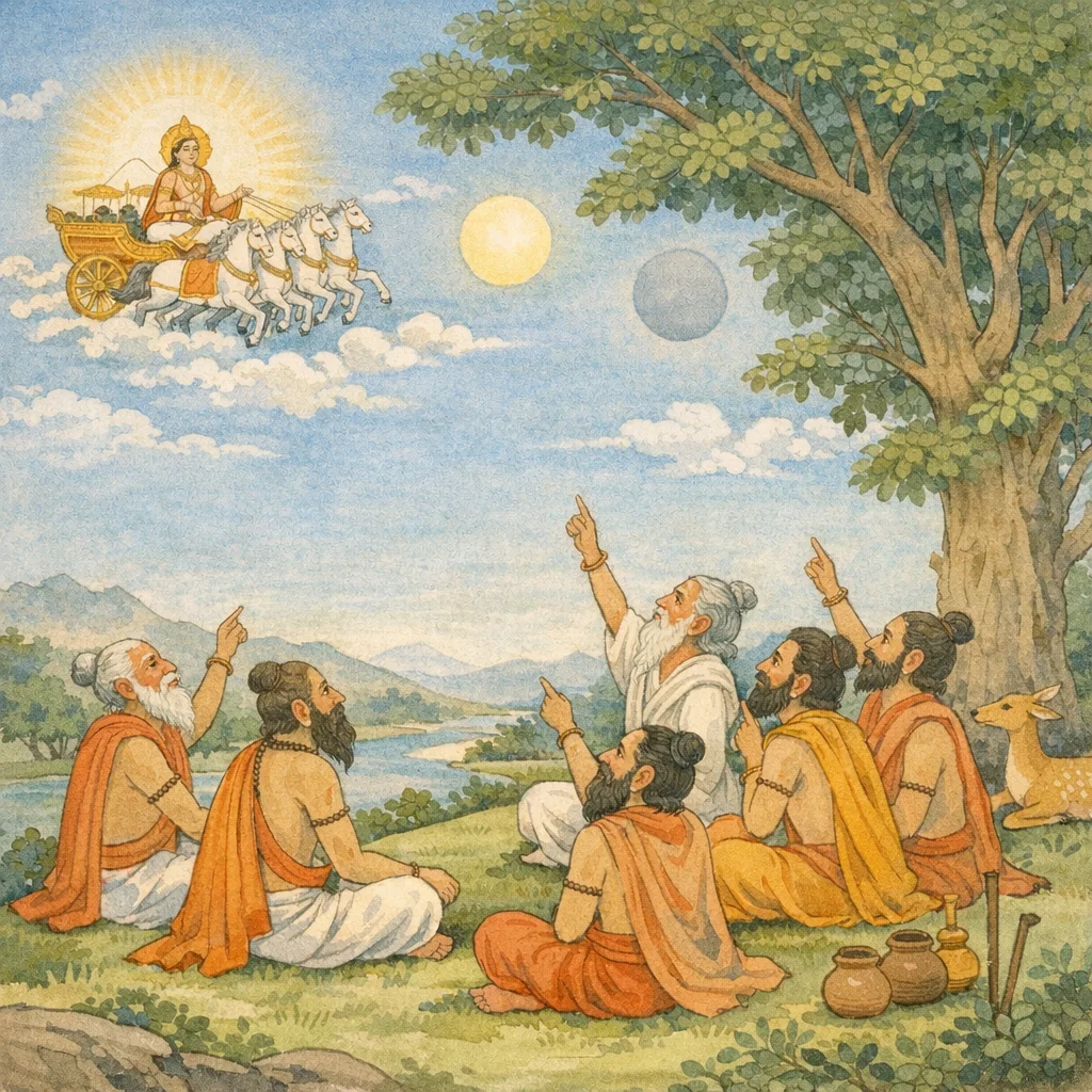 Then we, seized by doubt, questioned Ravi (the Sun): “O Lord, who was that other one—like a second Sun—who, striding across the sky, came here?”