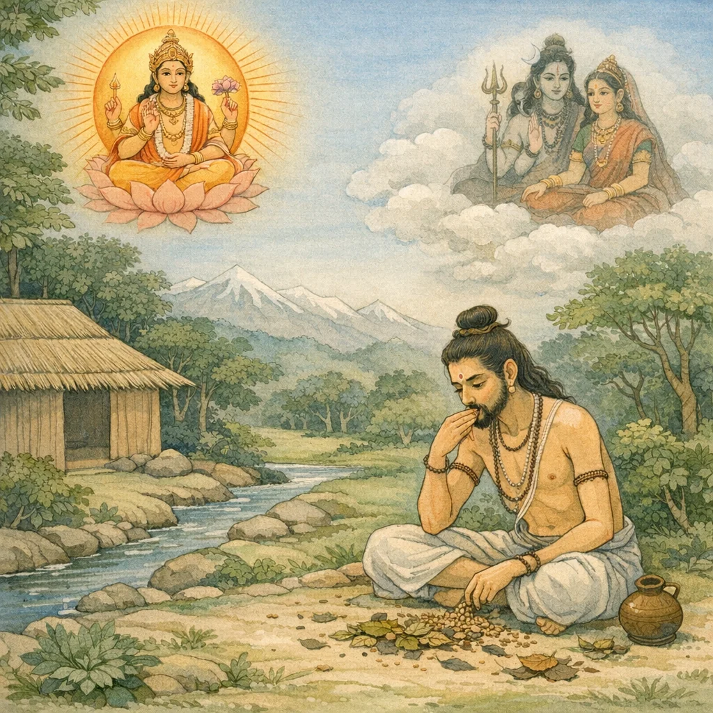 Surya said: “This one is neither a god—nor the friend of the Wind—nor an asura, nor even a serpent-being. He is a sage who, perfected by the vow of living on gleanings (ucchiṣṭa-vṛtti), has attained spiritual accomplishment and has now reached the heavenly realm.”