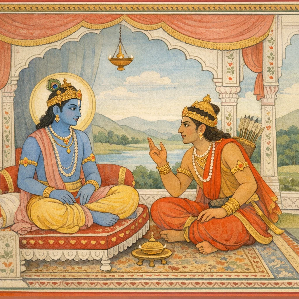 Chapter Arc: Arjuna turns to Janardana (Krishna) after Yudhishthira has spoken, declaring that he too has heard Krishna’s counsel and now must speak what burns within him. → He questions whether peace is truly attainable—whether Dhritarashtra’s greed, weakness, and helpless attachment have made reconciliation impossible. Arjuna presses the deeper doubt: is human effort (paurusha) futile before past karma, or do actions still bear fruit through present striving? → Arjuna urges Krishna that mere going as envoy is itself a necessary act of dharma and strategy—yet if Duryodhana remains the ‘durात्मा’, then Krishna must do whatever he intends, even if it leads beyond soft conciliation. Arjuna’s voice hardens into a moral verdict: the wicked one does not deserve to live with sons and kin if he persists in cruel deceit. → He yields the final decision to Krishna’s discernment—whether peace with the Kauravas occurs or not, Krishna’s considered intention becomes the Pandavas’ guiding authority; the mission must proceed, and the outcome will follow Krishna’s will and method. → Krishna’s impending departure to the Kaurava court hangs over the chapter: will diplomacy restrain Duryodhana, or will the envoy’s visit become the last step before inevitable war?