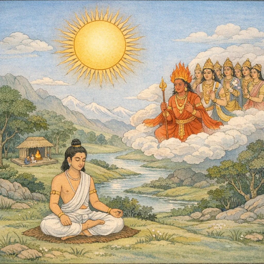 Lomaśa said: He too chose a boon—his own father’s restoration to life. Then he further asked that his brother be regarded as blameless, and that the memory of the father’s slaying be erased, so that the family might be freed from the stain of guilt and the cycle of retaliatory hatred.