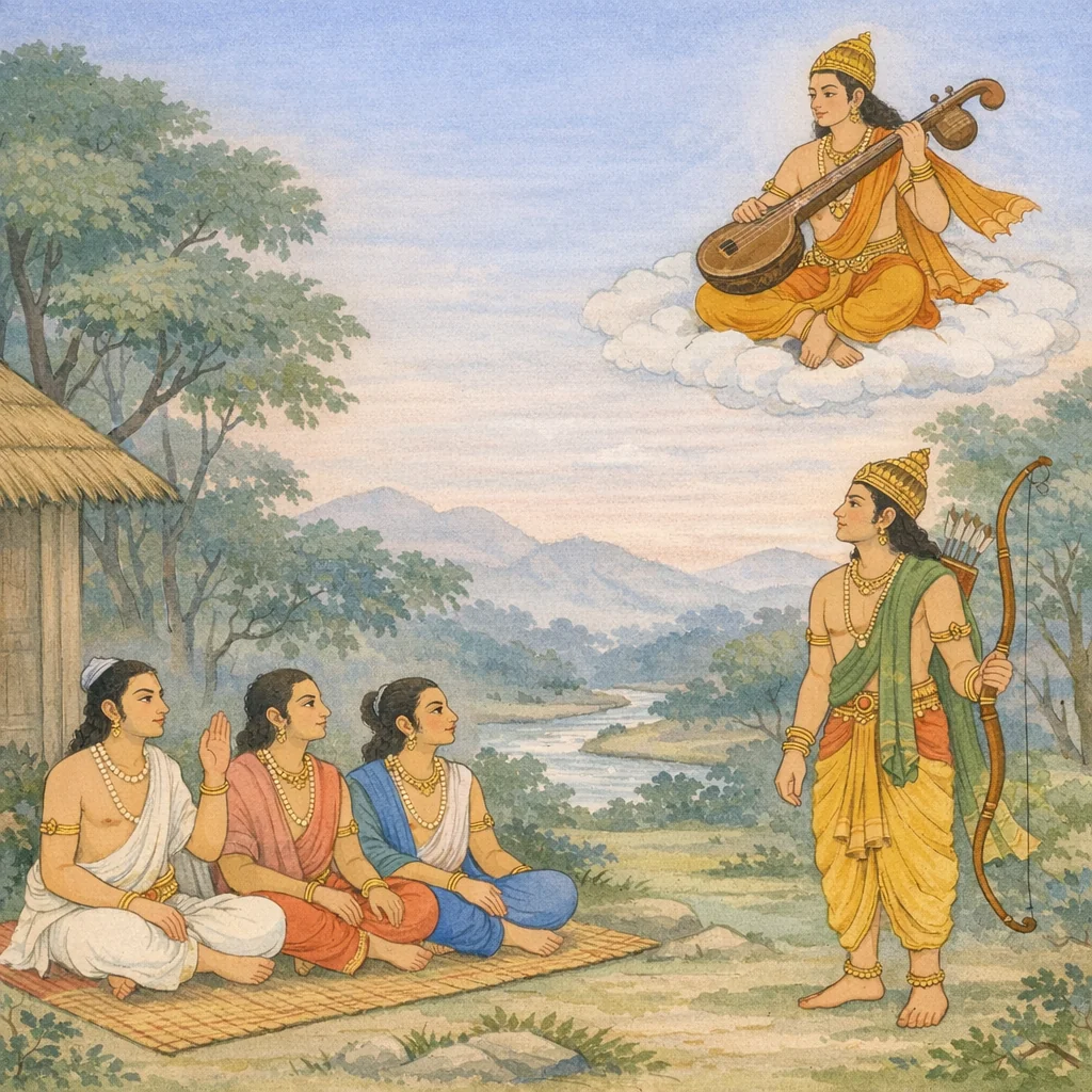 Vaiśampāyana said: Urged on by the gods, the Gandharvas began to sing many kinds of songs; and, O king, the companies of Apsarases, gathered in groups, began to dance. Thus did celestial beings, under divine prompting, transform the air with art—song and dance—heralding auspiciousness and the presence of higher powers.