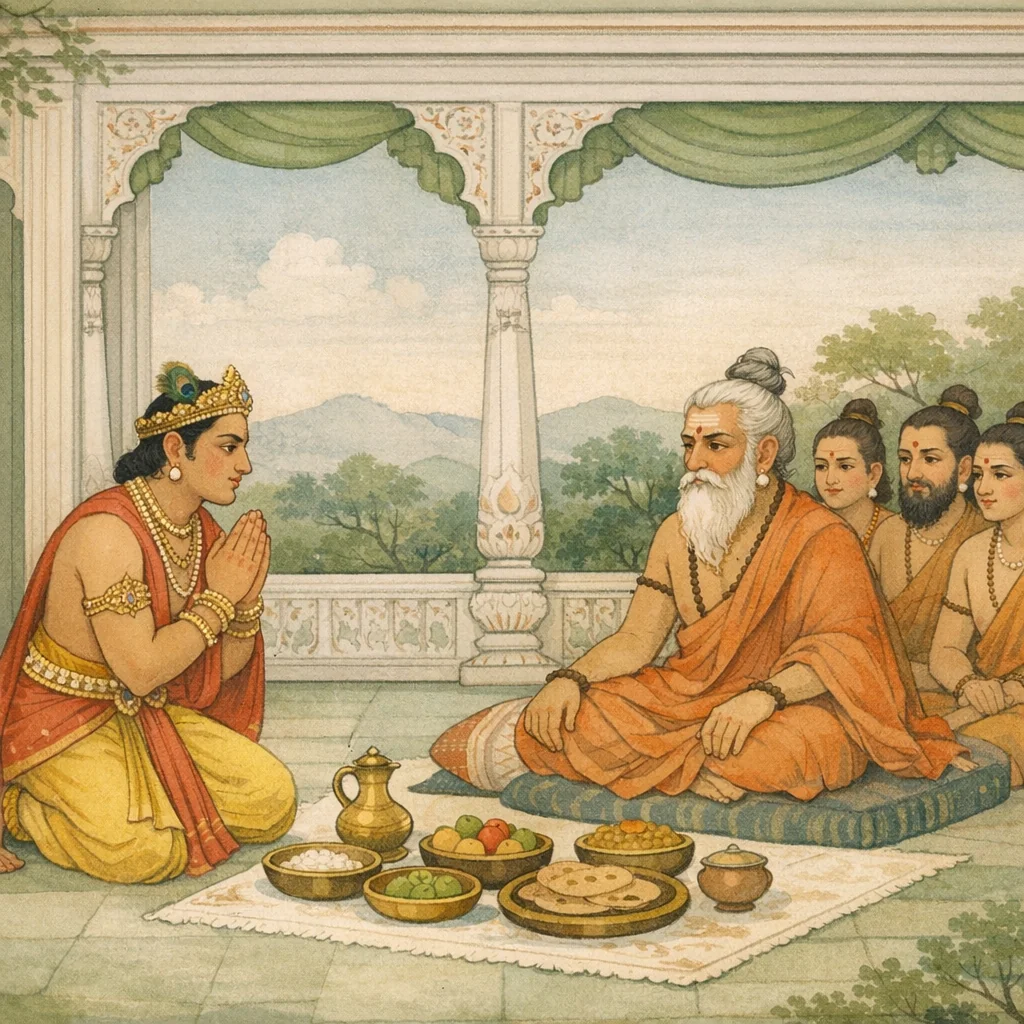 Chapter Arc: जनमेजय पूछते हैं—वन में रहते हुए भी पाण्डवों की कीर्ति, व्यवस्था और अतिथि-सत्कार की चर्चा सुनकर दुर्योधन जैसे दुरात्मा लोग उनके प्रति कैसे- कैसे आचरण करने लगे? → वैशम्पायन बताते हैं कि पाण्डवों के ‘नगर में रहने जैसे’ सुचारु जीवन और द्रौपदी के अक्षय-अन्न से ब्राह्मणों के तृप्त होने की बात सुनकर दुर्योधन के मन में पाप-बुद्धि जागती है। वह अपने भाइयों सहित दुर्वासा मुनि का अत्यन्त आदर से आतिथ्य करता है, दिन-रात उनकी सेवा में लगा रहता है और अनुग्रह पाने का अवसर खोजता है। → दुर्योधन दुर्वासा से वर-सा अनुग्रह माँगता है—‘यदि आप मुझ पर प्रसन्न हों, तो मेरी प्रार्थना से आप पाण्डवों के आश्रम में ठीक उसी समय जाएँ जब द्रौपदी भोजन कर चुकी हो’, ताकि अतिथि-धर्म के संकट में पाण्डव अपमानित हों। → दुर्वासा, दुर्योधन के आतिथ्य से संतुष्ट होकर उसकी बात मानने की ओर प्रवृत्त होते हैं; योजना का बीज पड़ जाता है और पाण्डव-आश्रम की ओर जाने का प्रसंग बनता है। → दुर्वासा के साथ अनेक शिष्यों का दल पाण्डवों के आश्रम की ओर बढ़ने लगता है—अब द्रौपदी और पाण्डव अतिथि-धर्म की इस अग्नि-परीक्षा से कैसे बचेंगे?