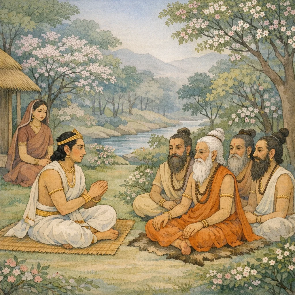Chapter Arc: जयद्रथ को पराजित कर द्रौपदी का उद्धार करने के बाद, धर्मराज युधिष्ठिर मुनिगणों के बीच बैठते हैं; संकट की कथा सुनकर ऋषि शोकाकुल हैं और सभा में प्रश्नों की अग्नि सुलग उठती है। → युधिष्ठिर, द्रौपदी के अपहरण-जैसे अनपेक्षित अपमान को अपने भाग्य-दोष और वनवास की विडंबना से जोड़कर, मार्कण्डेय से पूछते हैं—क्या कहीं उनसे अधिक दुर्भाग्यवान कोई है? वे द्रौपदी की निष्कलंकता, धर्मनिष्ठा और ब्राह्मण-सेवा का स्मरण कर पीड़ा को और तीव्र कर देते हैं। → युधिष्ठिर का आत्मविलाप चरम पर पहुँचता है: ‘अयोनिजा, वेदी से उत्पन्न, पाण्डु की स्नुषा—ऐसी शुचिता को स्पर्श करने वाला यह कलंक कैसे घटा?’ वे काल, दैव और ‘भवितव्य’ की अटलता का संकेत करते हुए भी अपने मन की न्याय-व्यथा को रोक नहीं पाते। → मार्कण्डेय के समक्ष प्रश्न स्पष्ट रूप लेता है—धर्म का पालन करने वालों पर भी विपत्ति क्यों आती है, और क्या यह सब काल-दैव की रचना है? अध्याय का अंत युधिष्ठिर के प्रश्न-रूप में ठहरता है, जिससे आगे उपाख्यान/उपदेश का द्वार खुलता है। → मार्कण्डेय इस प्रश्न का उत्तर किस दृष्टि से देंगे—दैव-प्रधान, कर्म-प्रधान, या धर्म-संकट के समाधान के रूप में किसी प्राचीन आख्यान द्वारा?