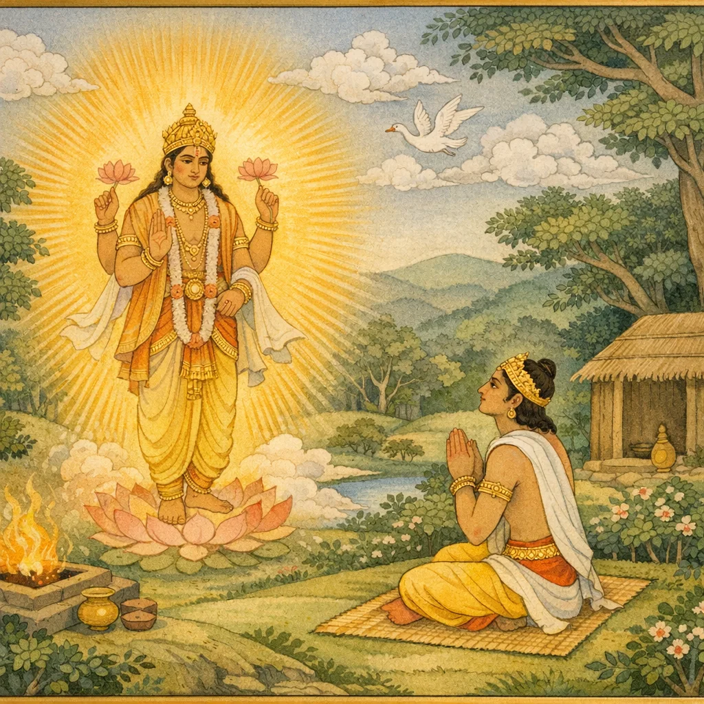 Chapter Arc: वन के एकांत में, दानवीर कर्ण के भीतर उठती प्रतिज्ञा-सी कठोरता को सूर्यदेव स्वयं संबोधित करते हैं—मानो पिता अपने पुत्र के भाग्य पर अंतिम बार हाथ रख रहा हो। → सूर्य कर्ण को सावधान करते हैं कि इन्द्र छल से उसके कुण्डल-कवच हरने आएँगे। वे समझाते हैं कि कीर्ति का मार्ग प्राण-विरोध (आत्म-विनाश) नहीं, बल्कि देह-रक्षा के साथ धर्म-पालन है; जीवित रहने पर ही माता-पिता, पुत्र और बन्धु अर्थ पाते हैं। → सूर्य का निर्णायक आदेश—‘इन्द्र को कुण्डल मत देना’; और साथ ही तीखा तर्क कि जो कीर्ति प्राणों को खा कर मिलती है, वह अंततः प्राणों सहित ही चली जाती है—यह उपदेश कर्ण की दान-प्रतिज्ञा पर सीधा प्रहार बनता है। → सूर्य कर्ण को यह भी दिखाते हैं कि कुण्डलों से वह आकाश में विशाखा-नक्षत्रों के बीच चन्द्रमा-सा शोभित है—अर्थात यह केवल आभूषण नहीं, जीवन-रक्षा का कवच है। अध्याय का अंत सूर्य की चेतावनी और कर्ण के सामने खड़े धर्म-संकट की स्पष्टता पर टिकता है। → इन्द्र जब याचक-वेष में आएँगे, तब कर्ण सूर्य की आज्ञा मानेगा या अपनी दान-कीर्ति की प्रतिज्ञा?