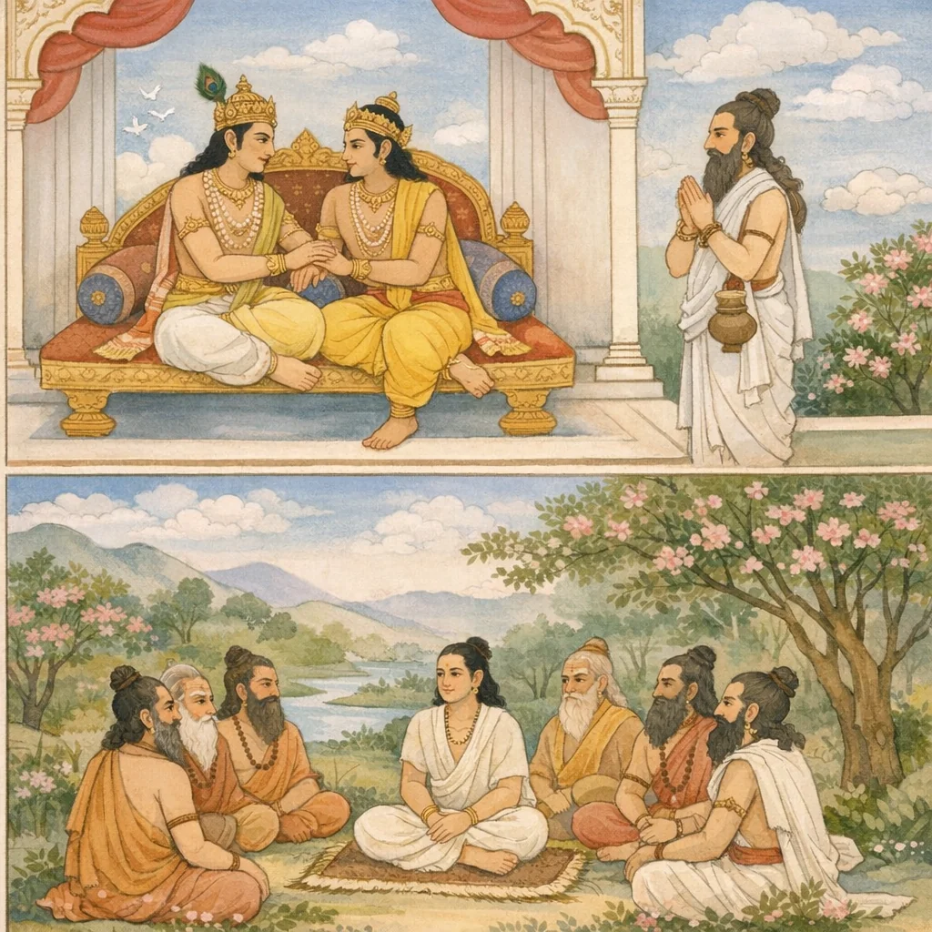 Upa-parva: Kāmyaka-vāsa (Residence in the Kāmyaka Forest) — Exile Sustenance and Brahmin Retinue