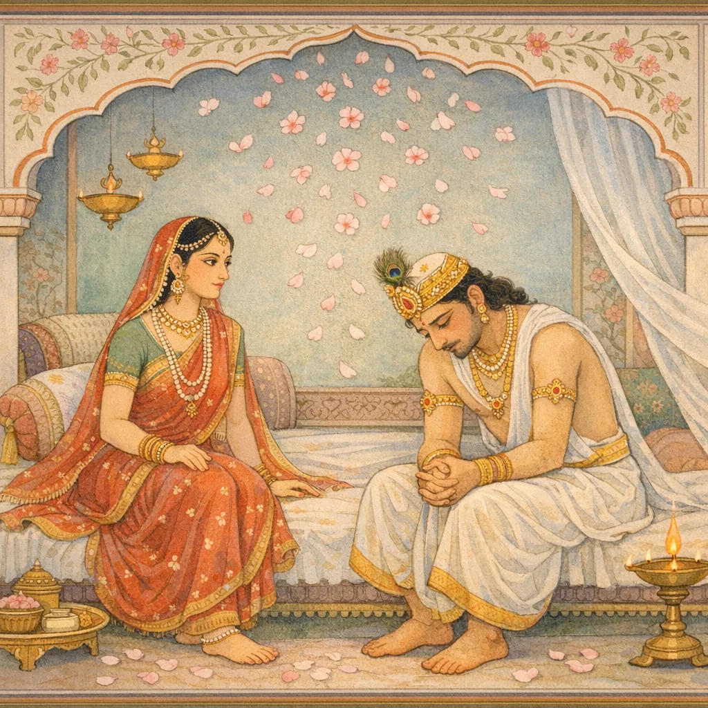 Then Damayantī once again sent Keśinī to her mother. Tormented by sorrow and longing to see Nala, she sought her mother’s support, keeping within the bounds of propriety while pursuing a righteous reunion with her husband.