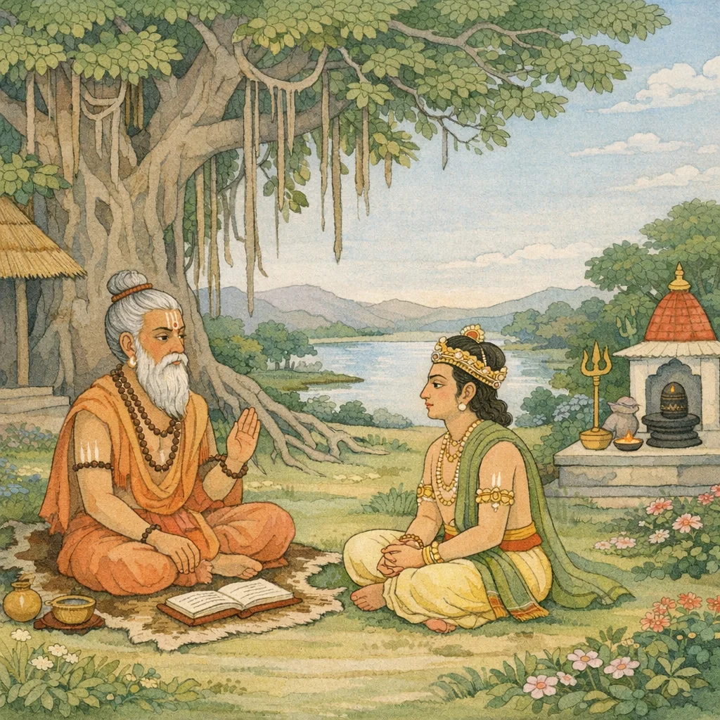 Pulastya said: “O knower of dharma, O fortunate one steadfast in excellent vows—by this humility of yours, by your self-restraint, and by your truthfulness, I am greatly pleased with you.”