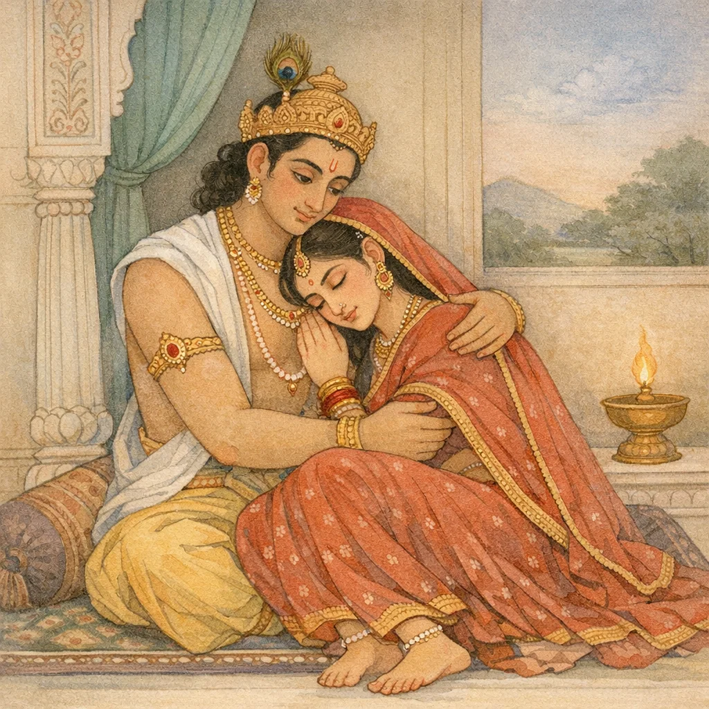 Vaiśampāyana said: “O King, having spoken thus, Kṛṣṇā (Draupadī) broke into sobs, resting her head upon Bhīma’s chest. Bhīmasena drew her close to his heart and offered her great consolation.”