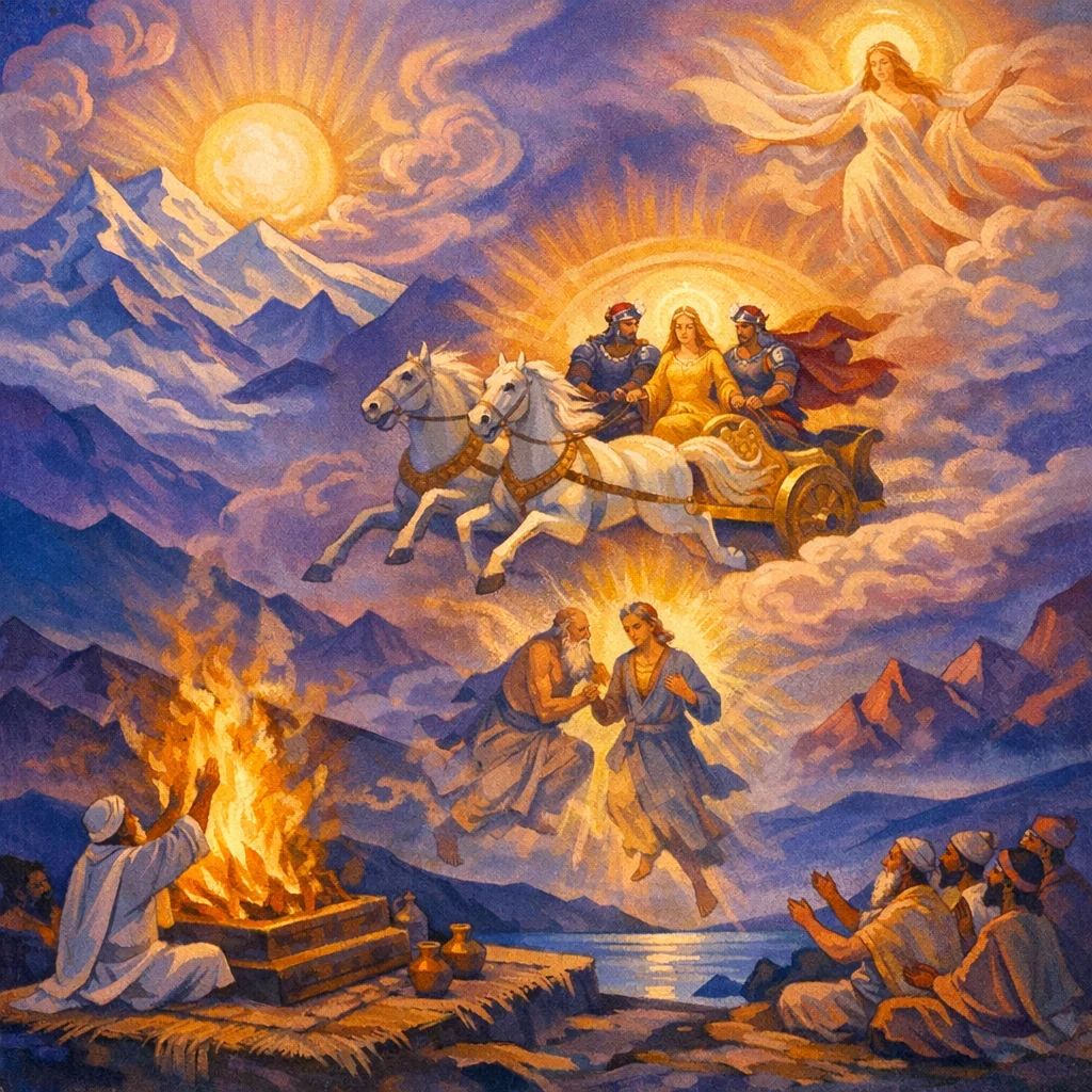 The Aśvins (Nāsatyā) are twin Vedic gods known for swift help—especially healing, rescue in danger, and restoring strength. They are closely linked with dawn and quick arrival in a shining chariot.