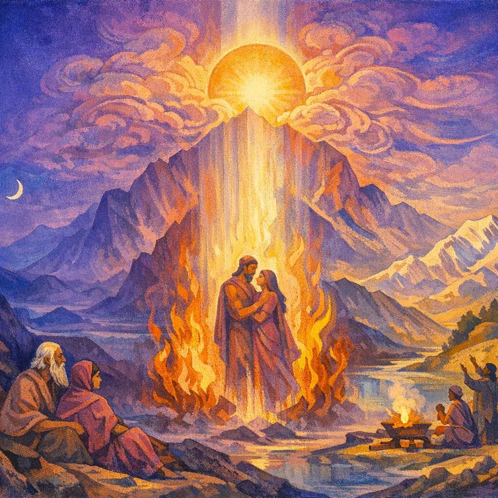 This brief dialogue hymn stages the tension between Agastya’s long ascetic labour and Lopāmudrā’s call toward marital union, desire (kāma), and generative fulfillment. It treats desire not as mere indulgence but as a force that, rightly released, supports progeny, strength, and the seer’s effective blessings. The hymn culminates in Agastya’s turning of tapas into fertility and “true benediction” (satyā āśiṣaḥ) offered to the gods.