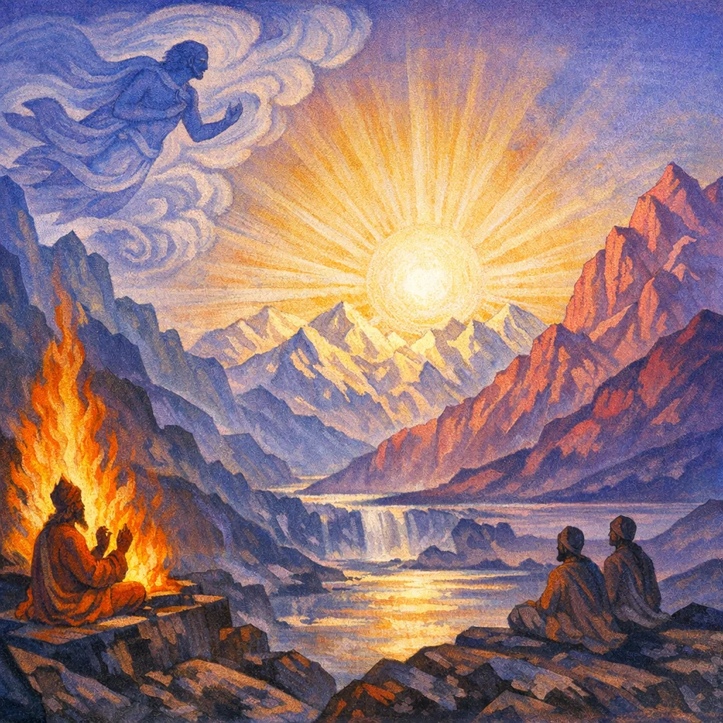 May Surya guard us from the heaven above; may Vata guard us from the mid-world; may Agni guard us from the earthly realms—so the whole being is protected on every plane.
