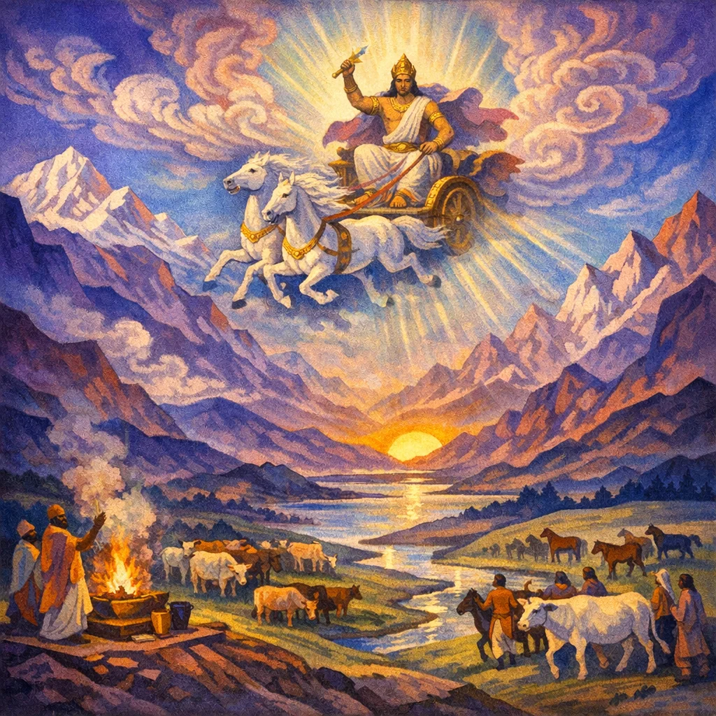 Whoever, desiring the gods, presses Soma for him with a will that loves and with the whole heart—Indra does not give away his cows (rays of light) to another; rather he makes for that one what is admirable and beautiful in the being.