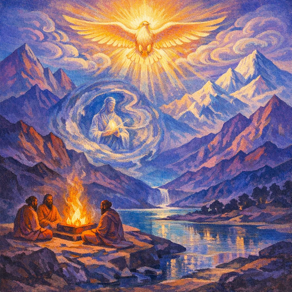This brief but highly mystical hymn contemplates Pataṅga, the “winged” solar principle, as the hidden Sun of consciousness perceived by seers through heart and mind. It links the Sun-bird to Asura’s māyā (sovereign shaping power), the Marīcīs (rays of illumination), and to Vāk (the inspired Word) guarded at the station of Ṛta (truth-order).