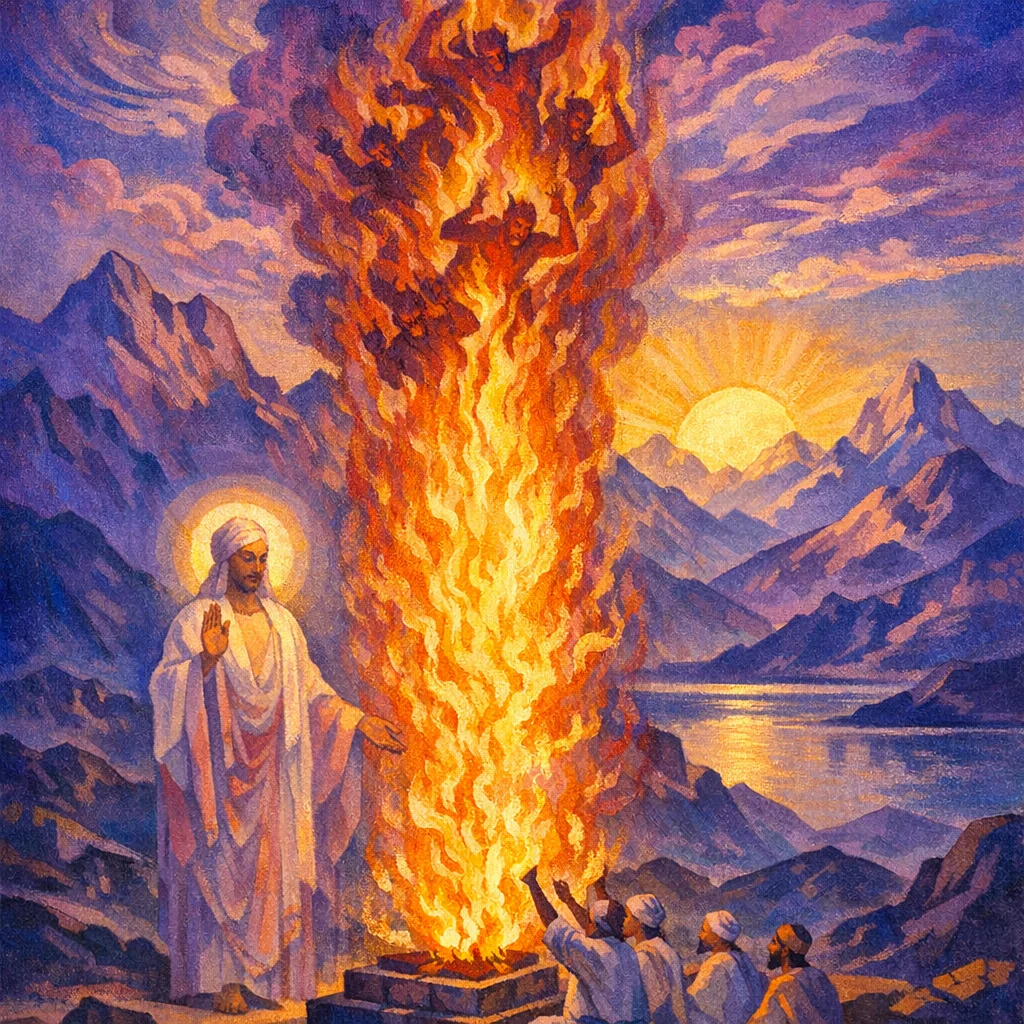 Narāśaṃsa is invoked as an auspicious protective power who guards the sacrifice and helps the worshipper gain peace and well-being through correct invocation.