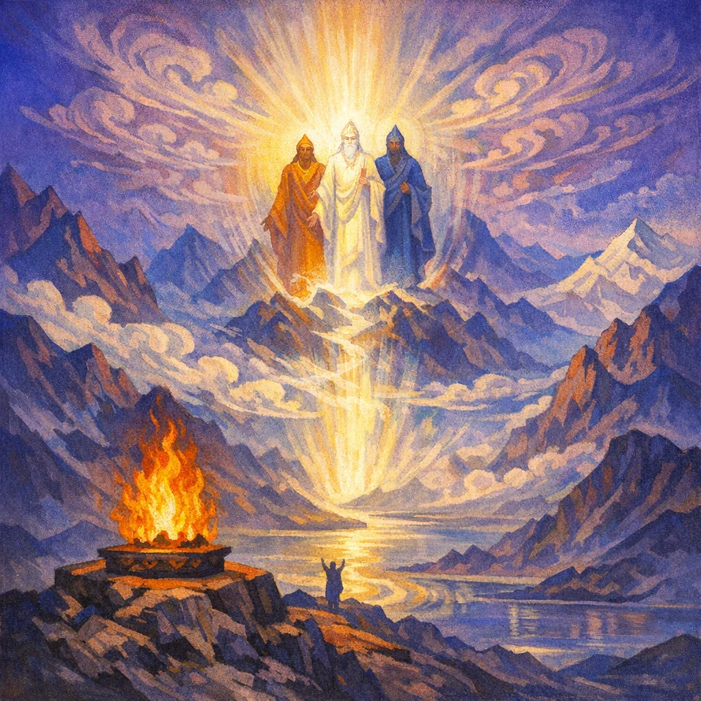 May the vast support of the Three be ours— the shining strength of Mitra and Aryaman, and the unassailable might of Varuṇa—so our life may stand in the clear order of the Truth.