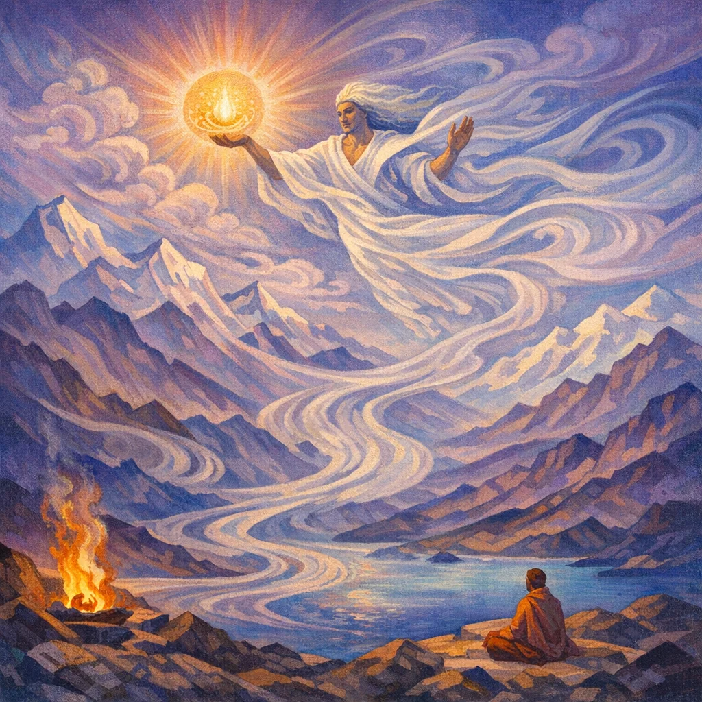 Vāta is the wind as a divine power—both the outer moving air and the inner life-breath (prāṇa). The hymn treats him as a healer who supports calmness, vitality, and longevity.