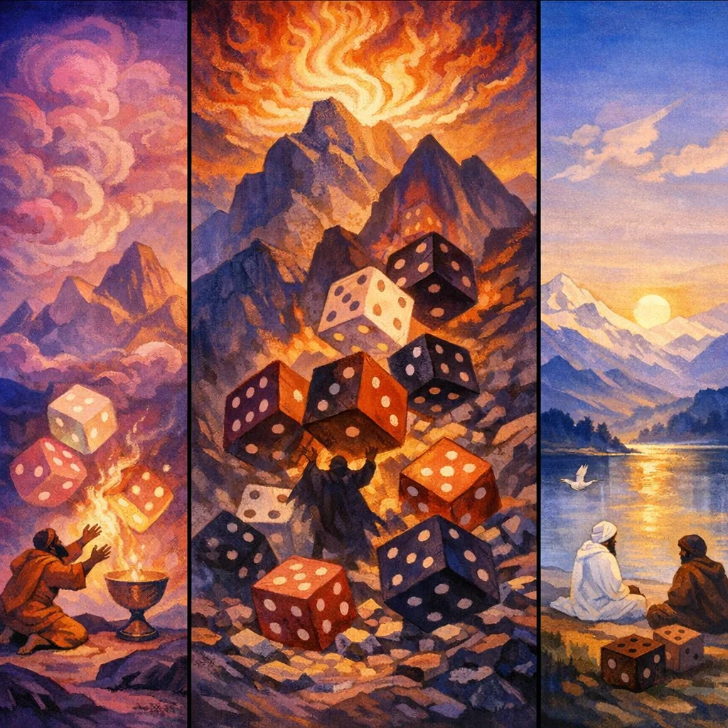 RV 10.34, the famous “Gambling Hymn,” is a first-person lament that portrays dice as a bewitching, fearsome power that intoxicates the mind and destroys home, wealth, and reputation. Through vivid confession and social realism, the hymn becomes a didactic warning about addiction, urging restraint, reconciliation, and a return to ordered life.