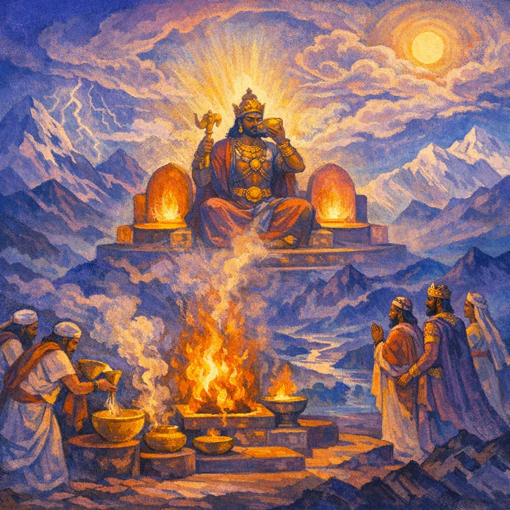 Indra (with Soma-offering emphasis; ritual roles Hotṛ etc. foreground the Soma-yajña frame)