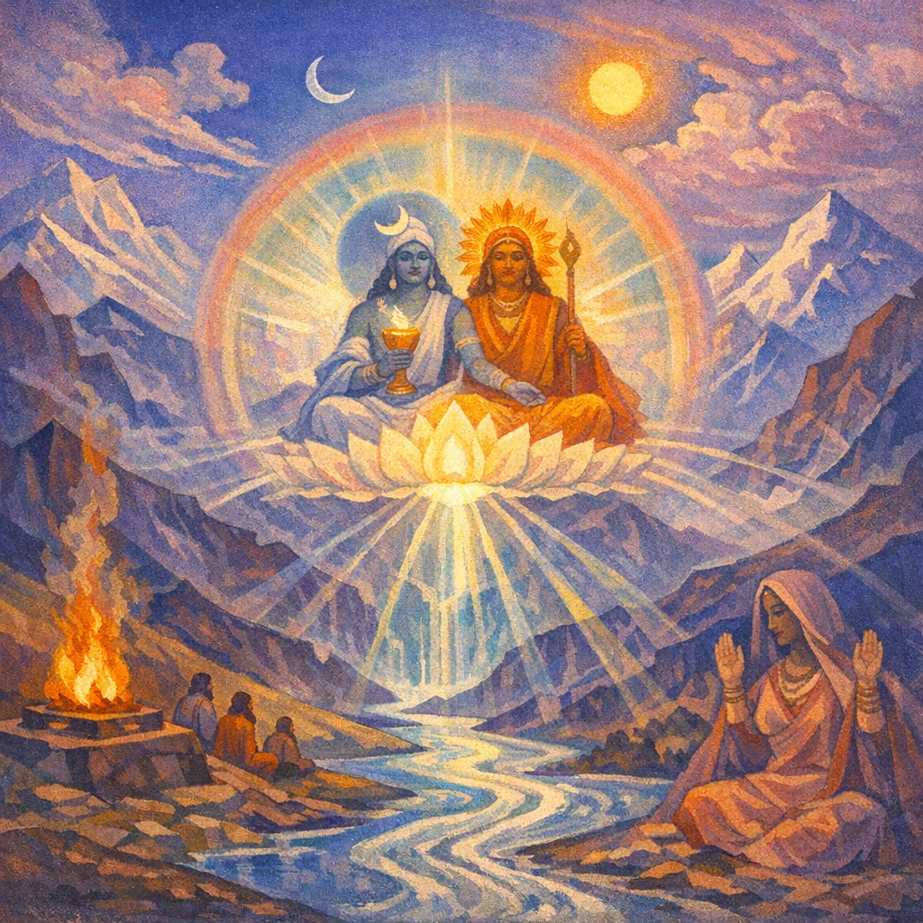Soma represents the sacred, invigorating essence that supports vitality and immortality, while Pūṣan is the nourishing protector and guide of right paths. Invoked together, they unite inner inspiration with outward nourishment and safe, fruitful increase.