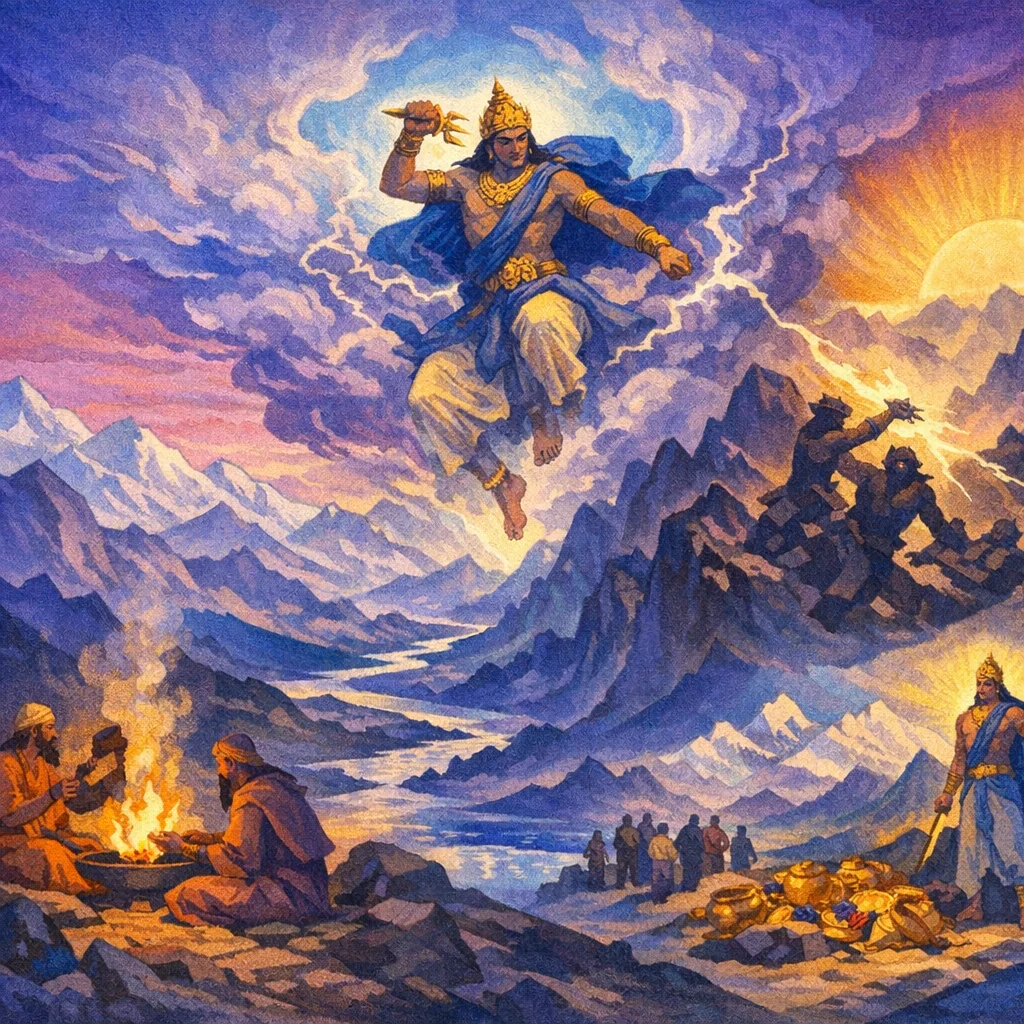 It suggests Indra’s power is not random: like the Sun keeping its course, Indra follows an ordinance, reaching the ‘end of the road’ and then releasing what was bound so movement can continue.