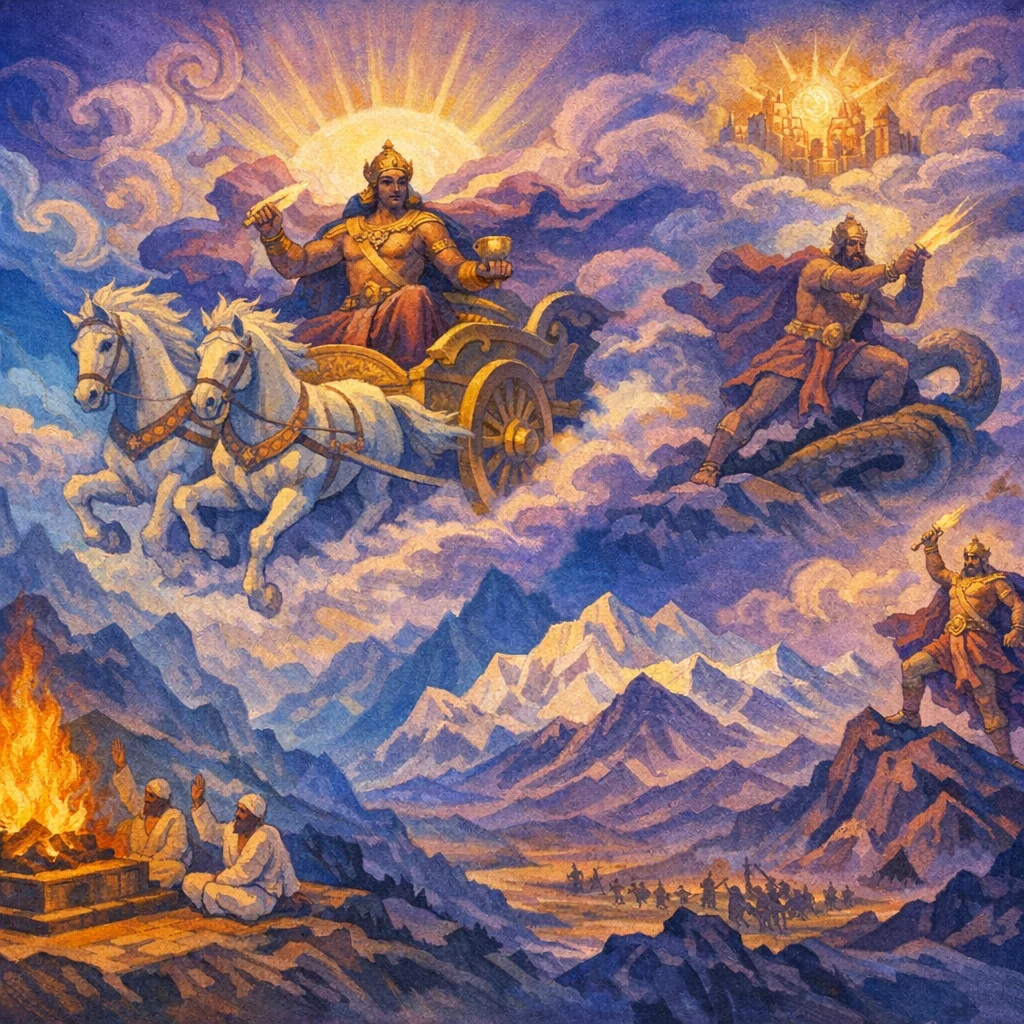 Outwardly it praises Indra’s mythic victory over the obstructer; inwardly it points to breaking obstacles—fear, inertia, and blockage—so energy, clarity, and prosperity can flow.